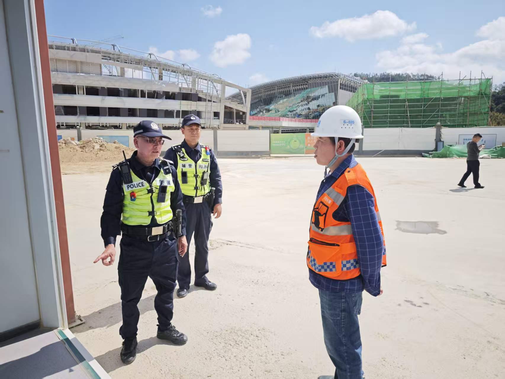 图为深汕民警在重大项目工地走访巡查。