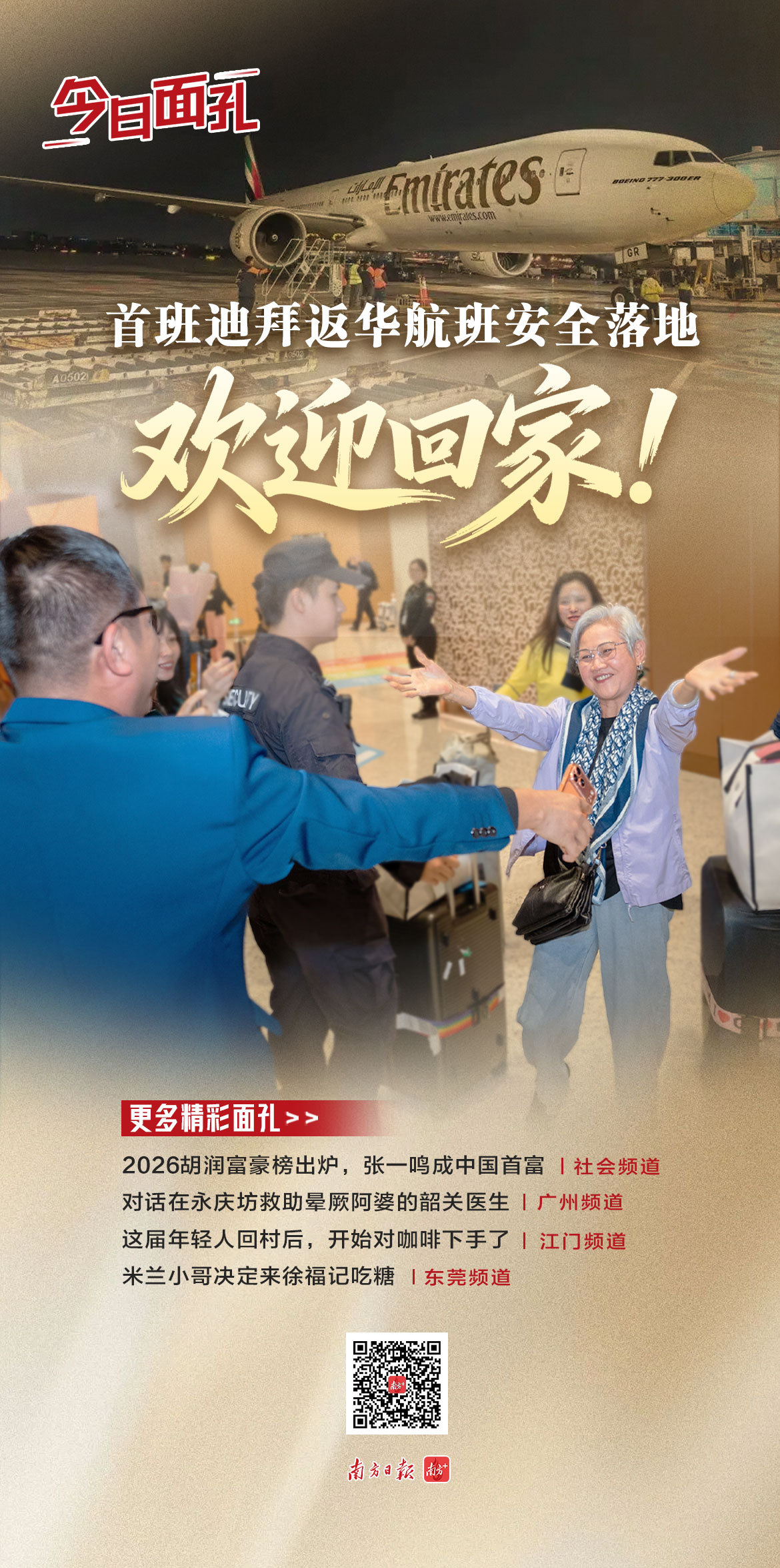 首班迪拜返华航班安全落地,“欢迎回家”