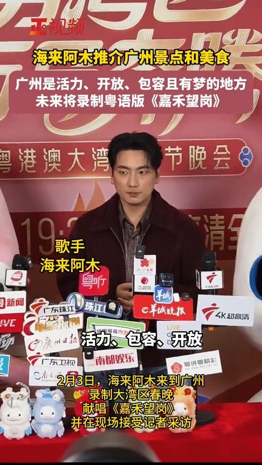 2月3日,歌手海来阿木来到广州,录制大湾区春晚,在现场深情演唱《嘉禾望岗》。“活力、开放、包容,而且是个有梦的地方。”海来阿木在采访现场这样形容他眼中的广州。
