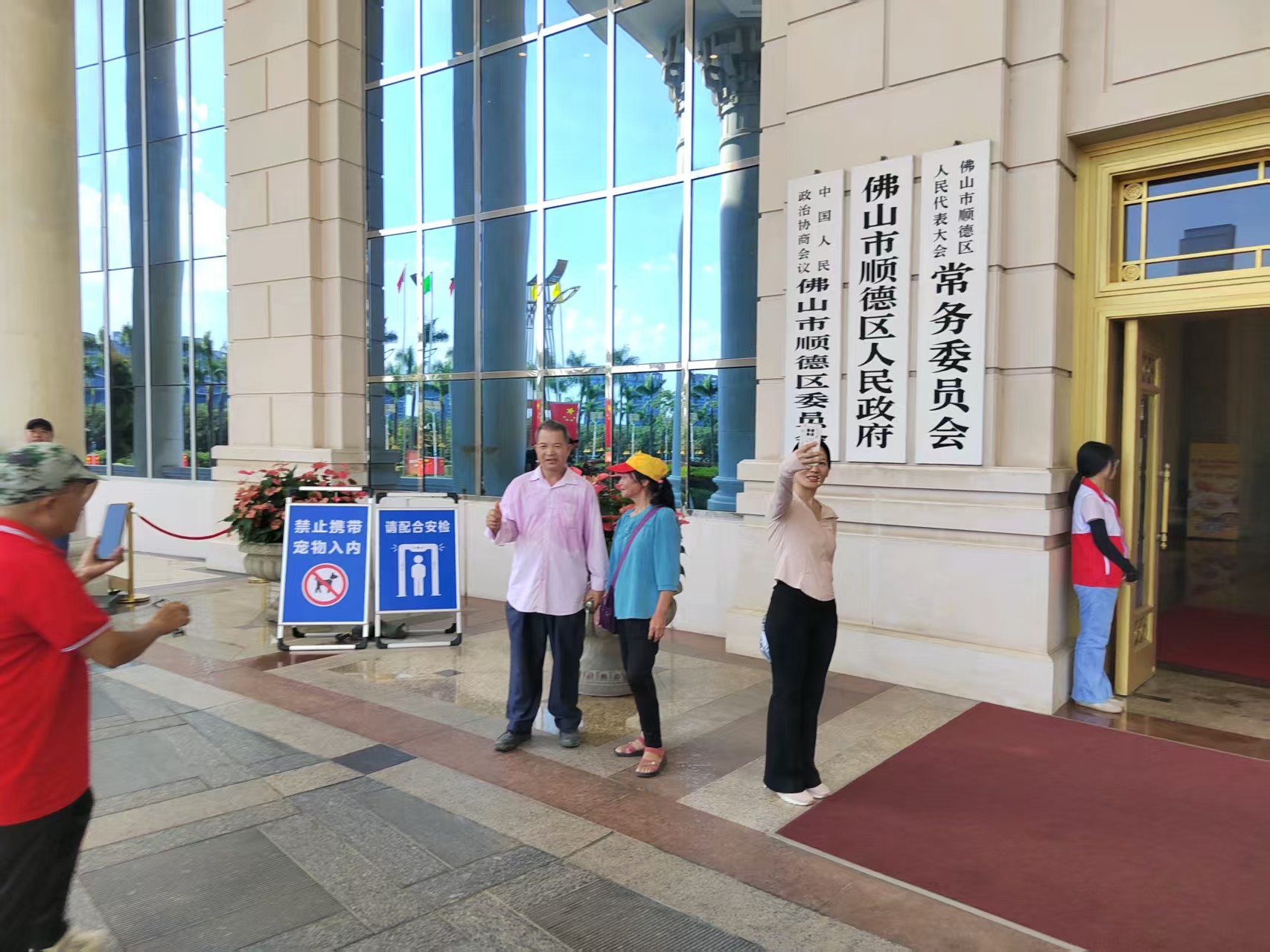 2025年国庆假期期间,顺德区政府大院开放后,市民游客在区政府拍照打卡。
