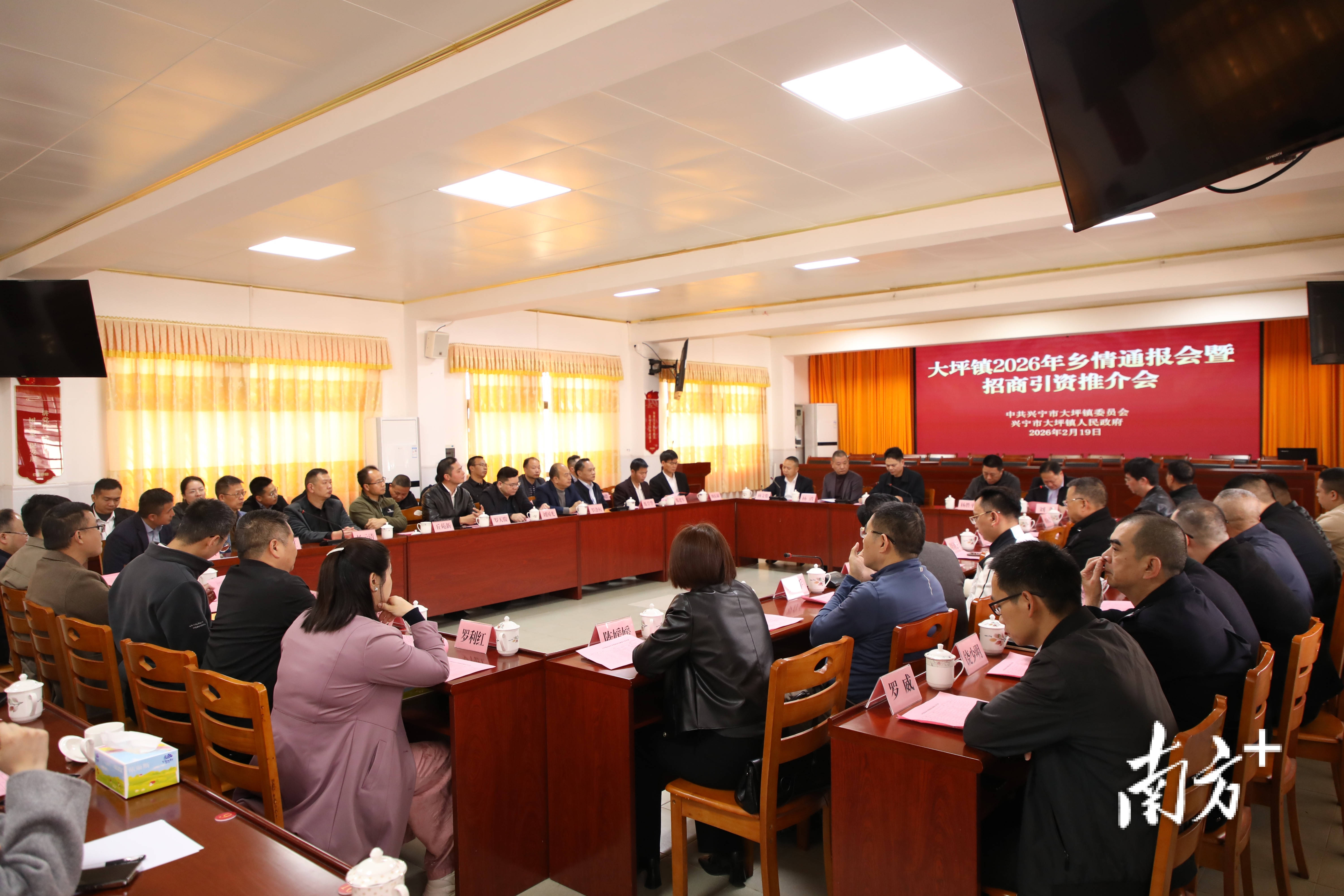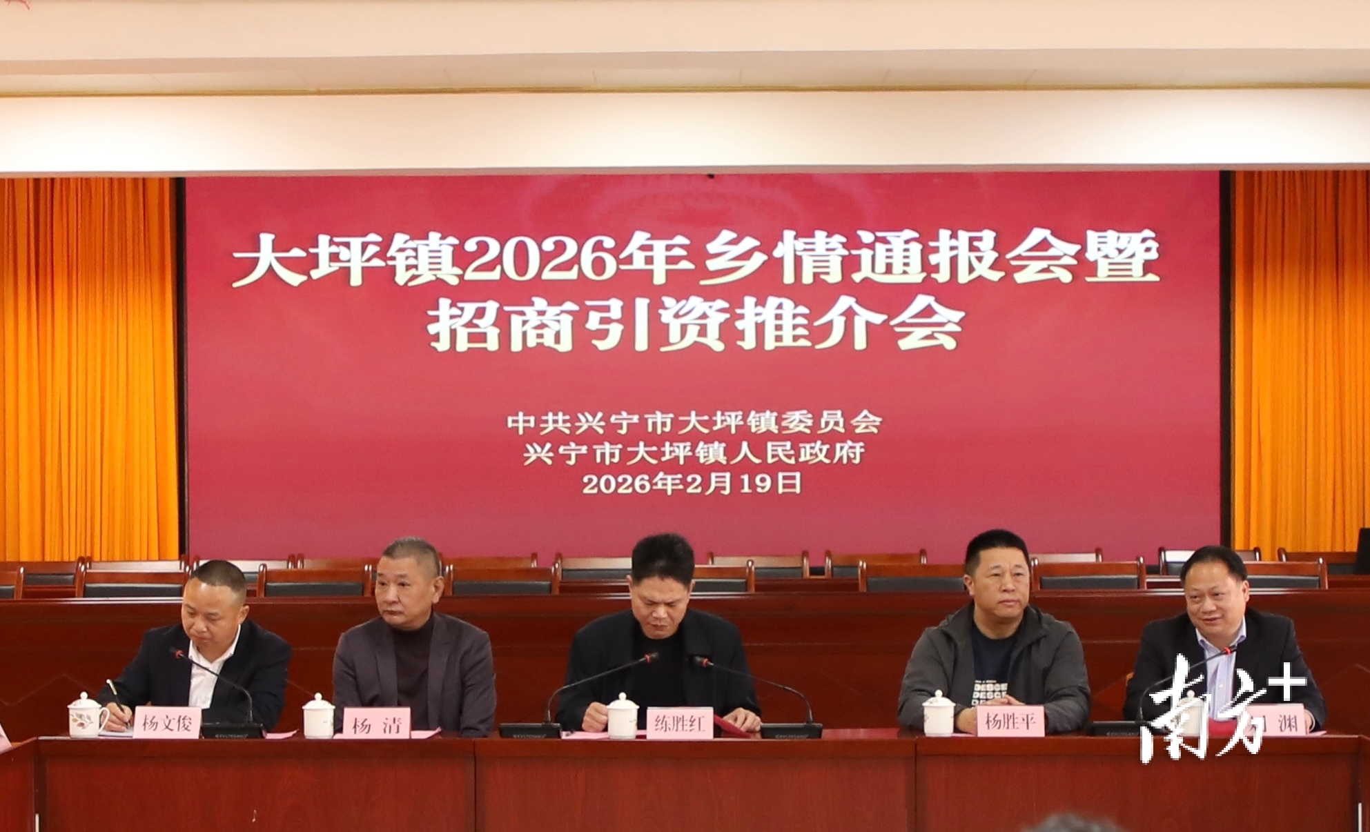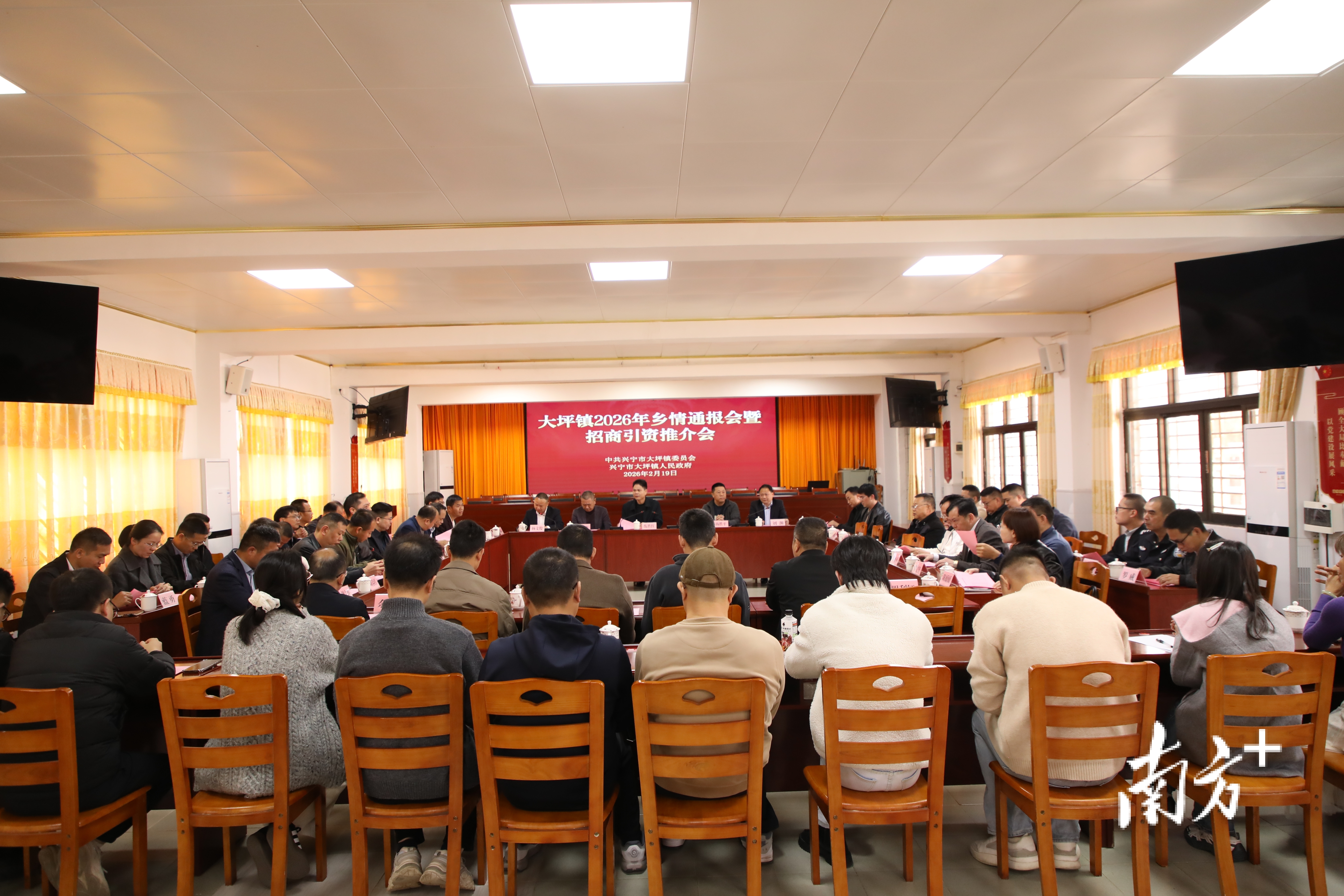 2月19日上午,兴宁市大坪镇党委、政府抢抓乡贤春节返乡时机,举办2026年乡情通报会暨招商引资推介会。挂点市领导、市政协副主席练胜红,镇党委书记刘渊,镇长杨文俊与40多位来自各行各业的乡贤代表齐聚一堂,共话家乡发展成果,共谋“十五五”开局新篇。与会乡贤中,既有深圳中电物业管理有限公司总经理杨胜平、广东共同投资集团董事长杨清等企业家代表,也有广东工业大学轻工化工学院党委书记周东斌、广东省农业农村厅乡村产业发展处副处长练建军等各界人士,大家畅所欲言,积极为家乡发展建言献策。