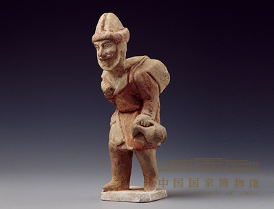 彩绘陶持壶背囊西域俑。来源/中国国家博物馆