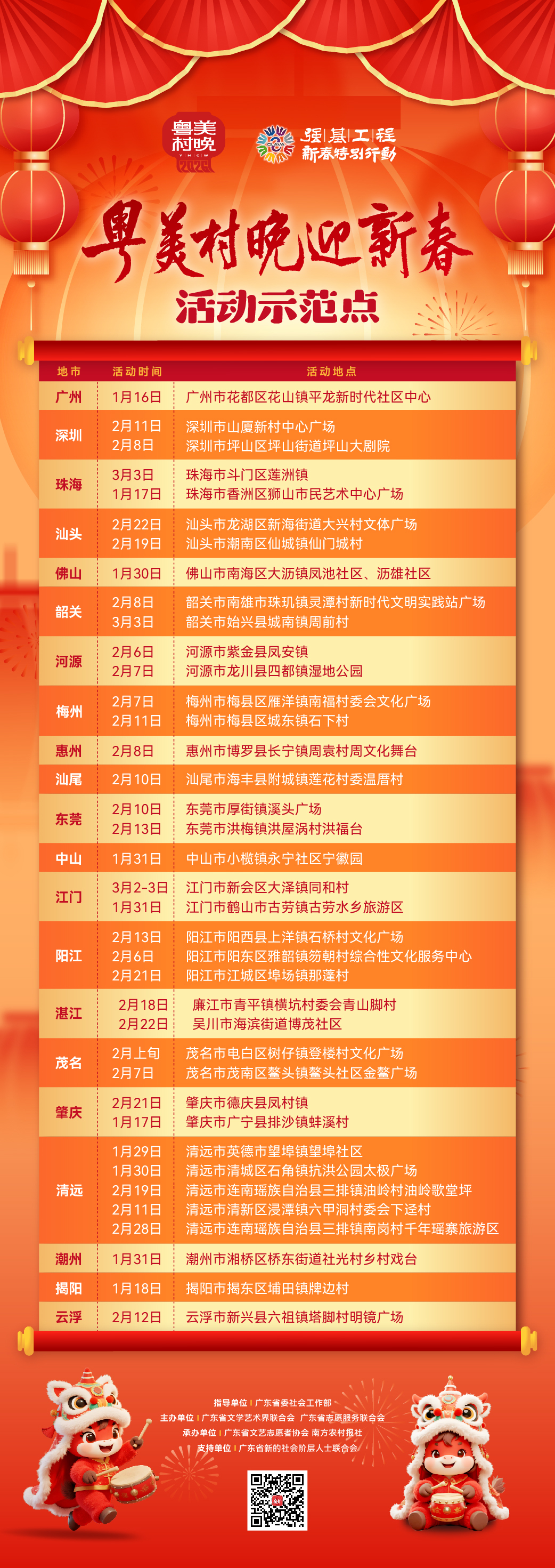 “2026‘粤美村晚’迎新春”广东省文艺志愿者服务活动是推进“百千万工程”的有效举措,“村晚+”效应愈发明显,推动各地农文旅融合发展。