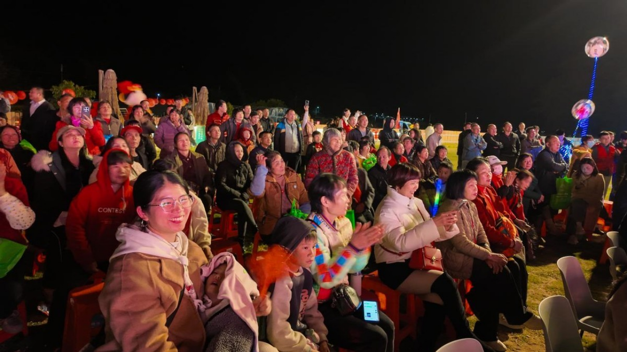 2月10日晚,海丰县莲花山下的温厝村灯火璀璨,人声鼎沸。活动通过非遗展演、特产展销、民俗体验等多维度呈现,璀璨的灯光、精彩的节目与古朴的村貌、飘香的茶园相得益彰。当晚活动在全体演员与观众合唱的原创主题歌曲《我的村晚我的年》中圆满落幕。据统计,本次活动共吸引现场观众超千人次,网络观看量近10万人次
