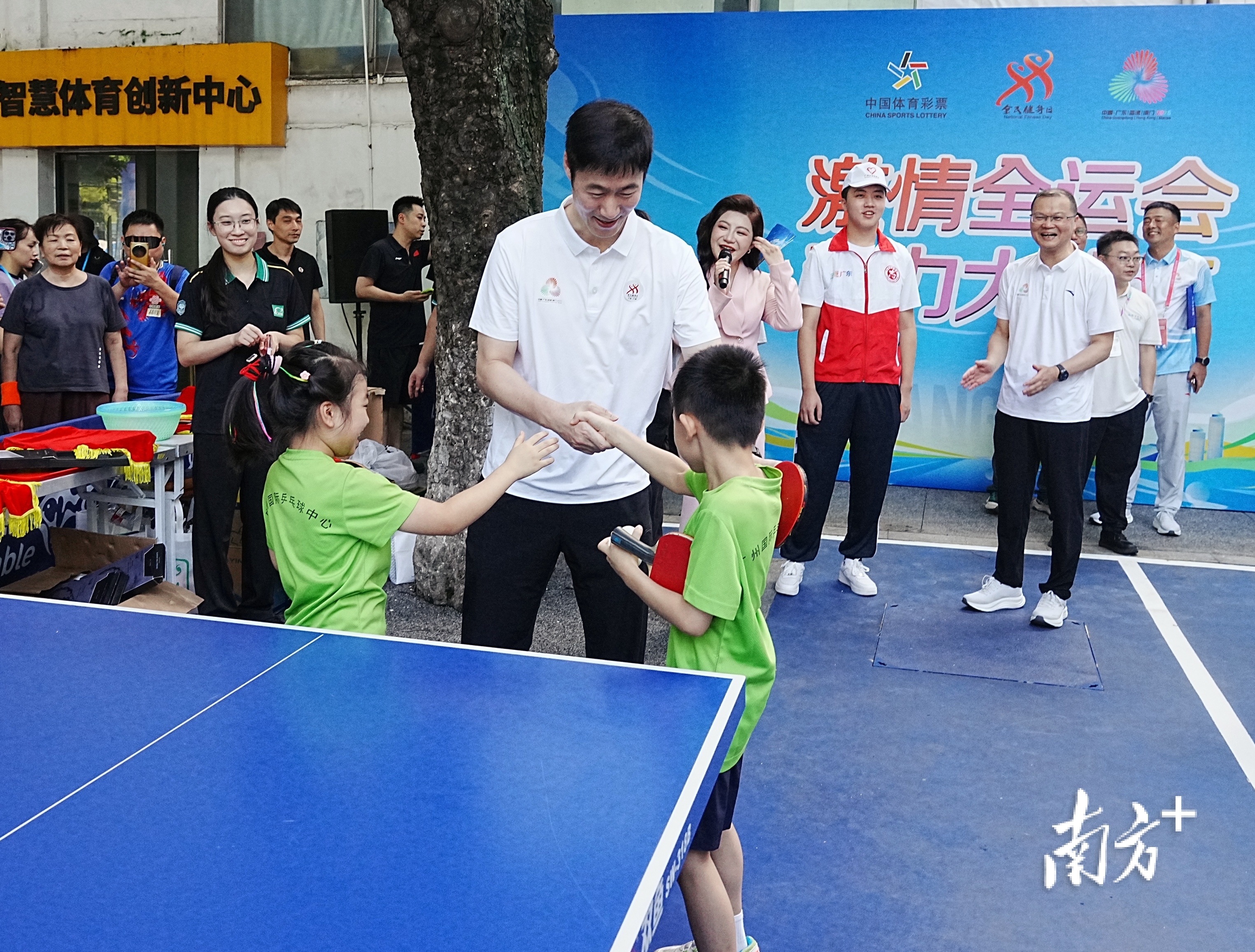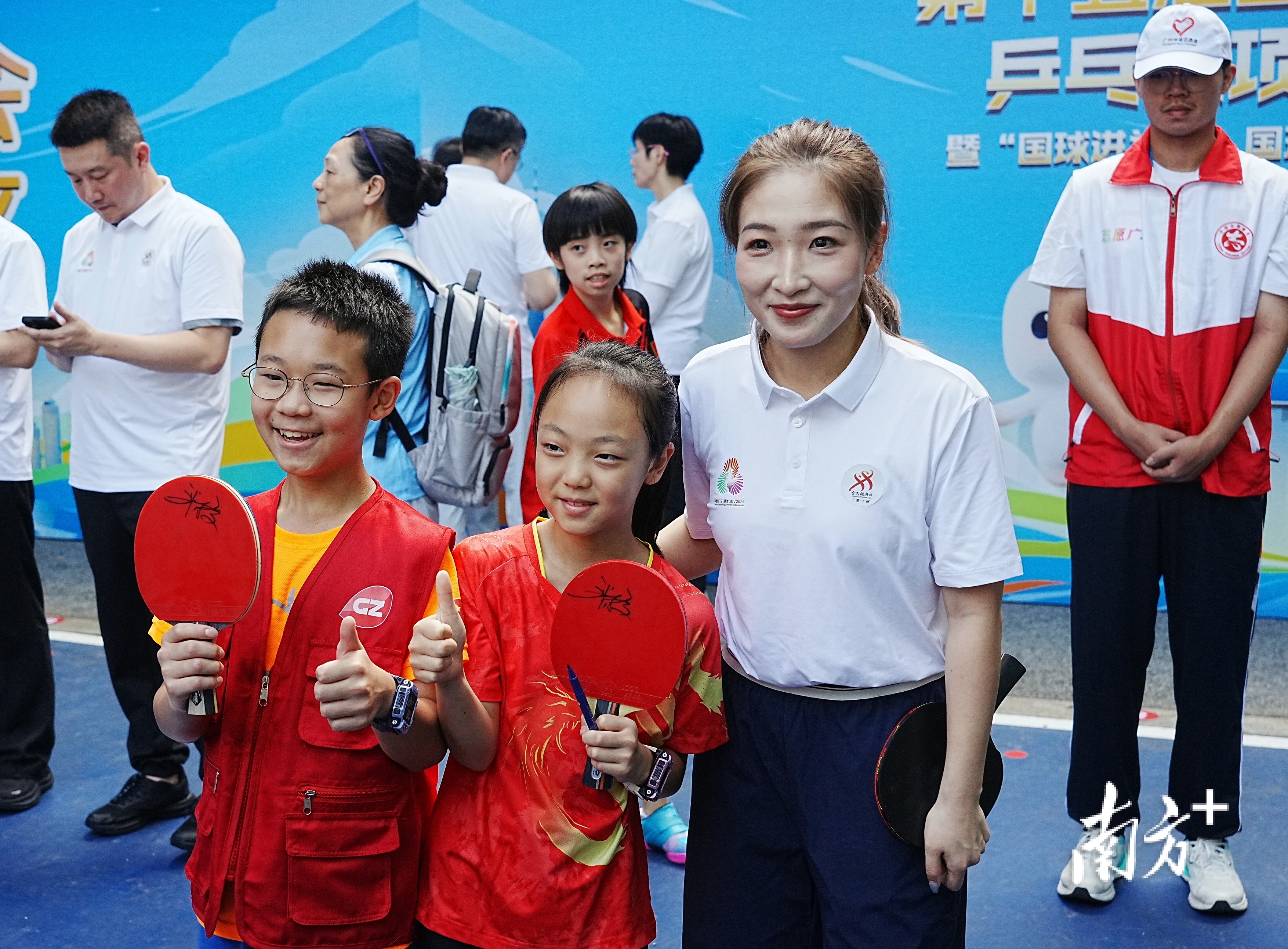随后,“国球进社区、国球进公园”活动同步展开,中国乒乓球协会主席王励勤及乒乓球奥运冠军与百姓乒乓乐园乒乓球挑战赛市民代表、广州市“市长杯”乒乓球赛冠军代表、社区及青少年乒乓球爱好者切磋交流。