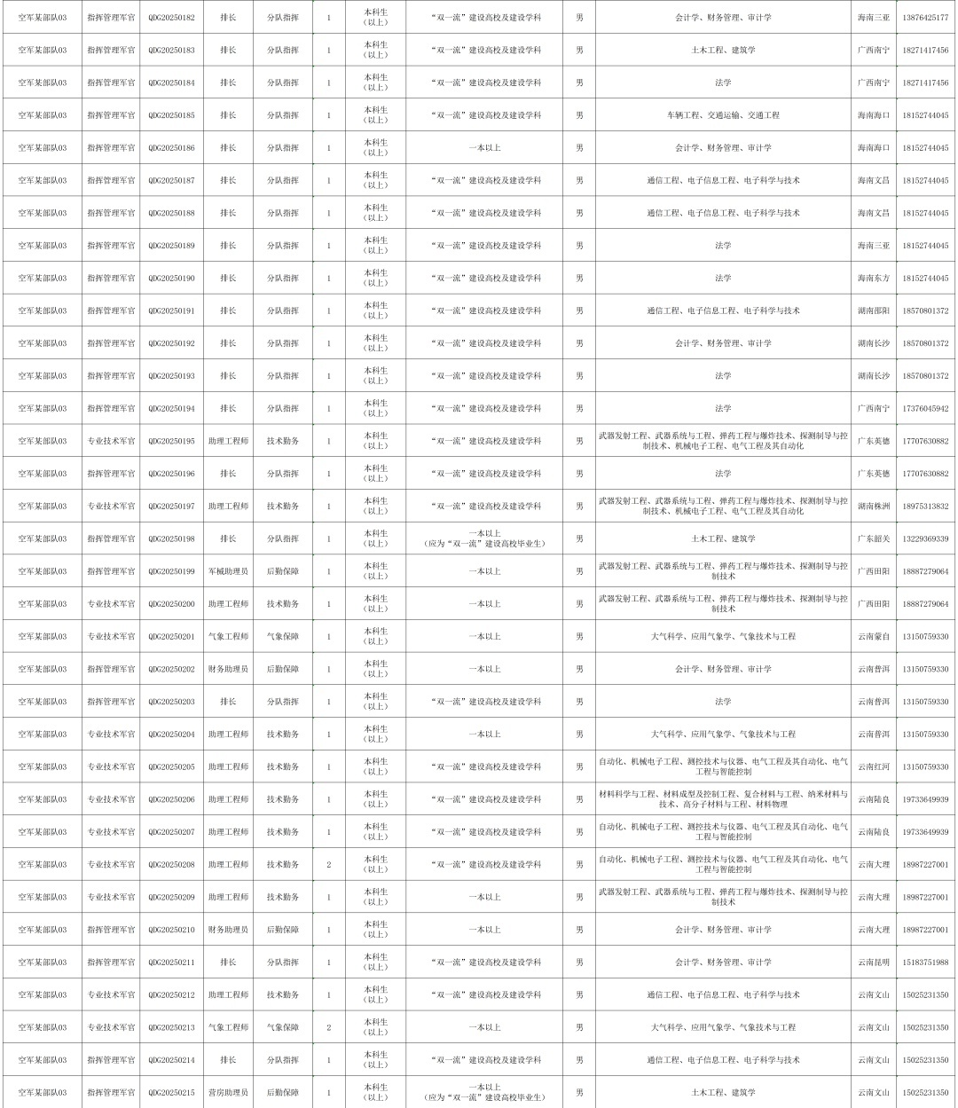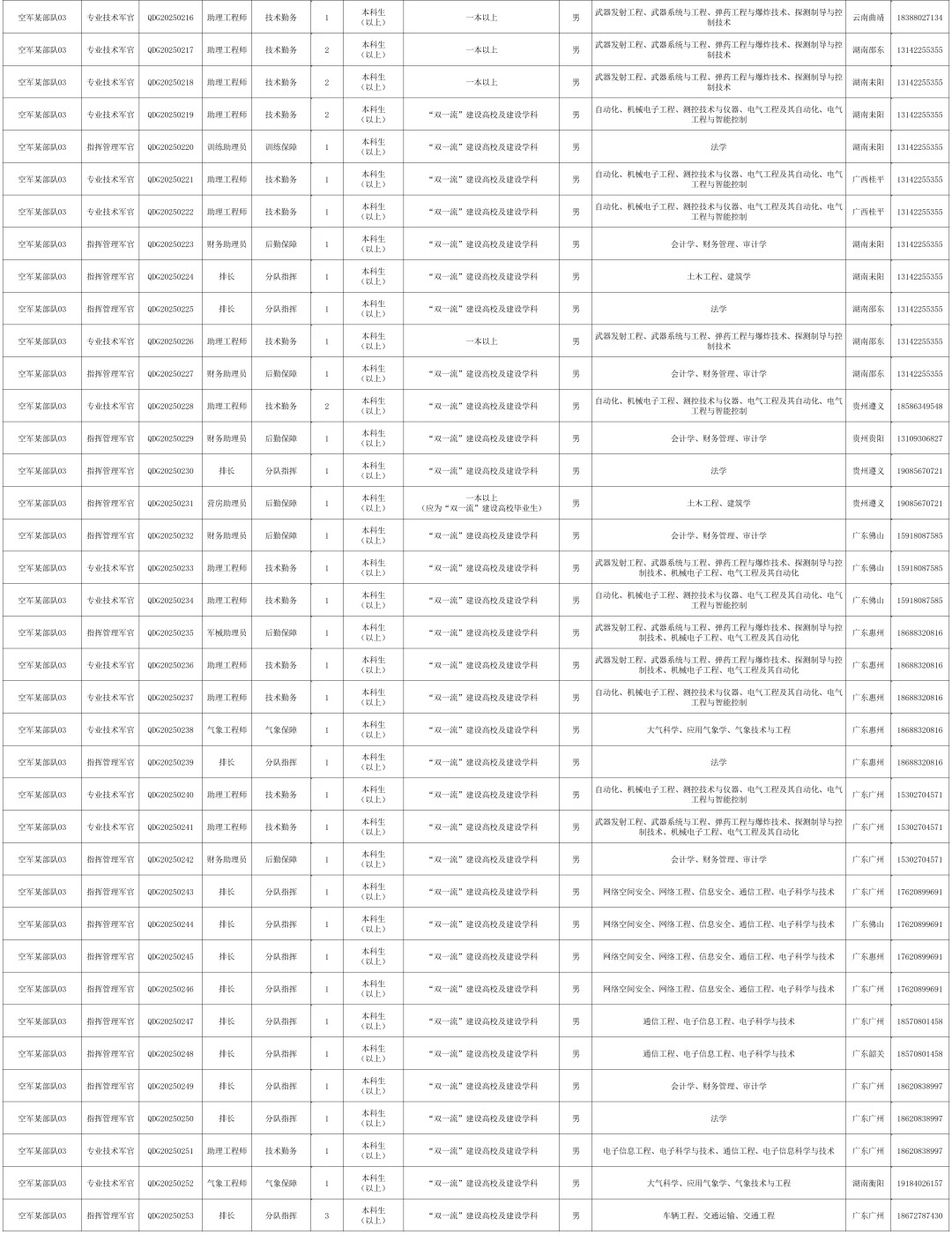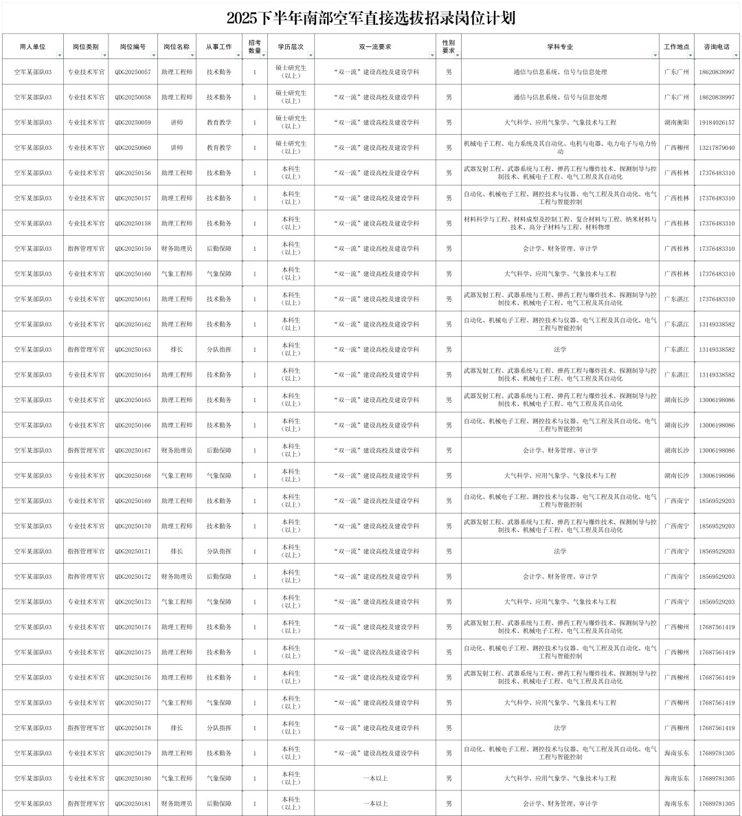 根据《现役军官管理暂行条例》《现役军官选拔补充暂行规定》及有关规定要求,按照全军统一部署,现将2025年下半年南部战区空军直接选拔招录军官工作公告如下: