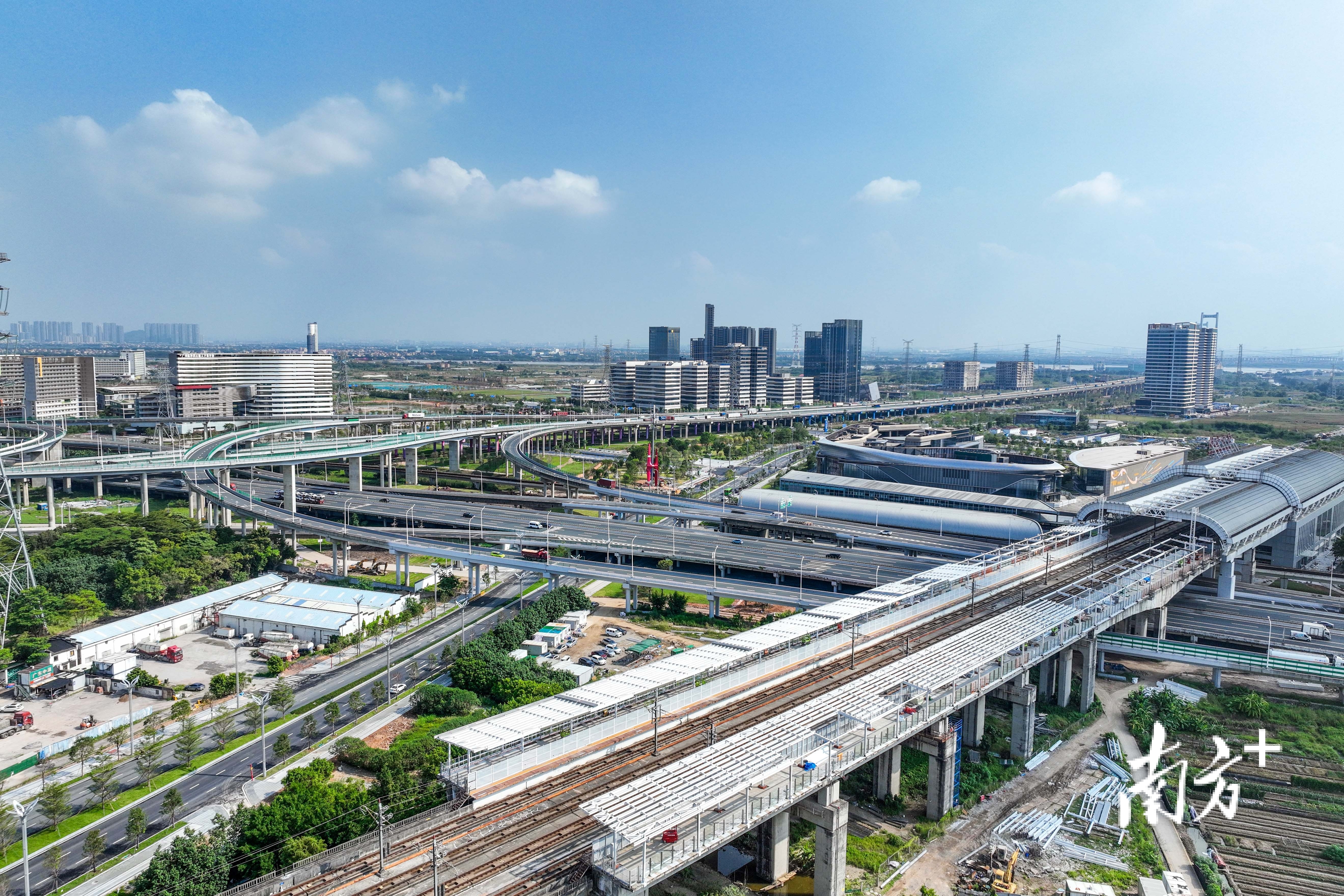 庆盛站更名为“南沙北站”的背后,是南沙“南北呼应、功能互补”双高铁枢纽体系的战略布局。根据规划,南沙站计划于2028年2月底竣工,作为广州“五主四辅”铁路枢纽的重要节点,其规划规模达14台29线,将超过广州白云站(11台24线)。该站将引入南沙港铁路、深茂铁路等多条线路,贯穿地铁18号线,形成“高铁—城际—地铁”多层次网络,实现1小时通达大湾区主要城市,助力环珠江口100公里“黄金内湾”建设。