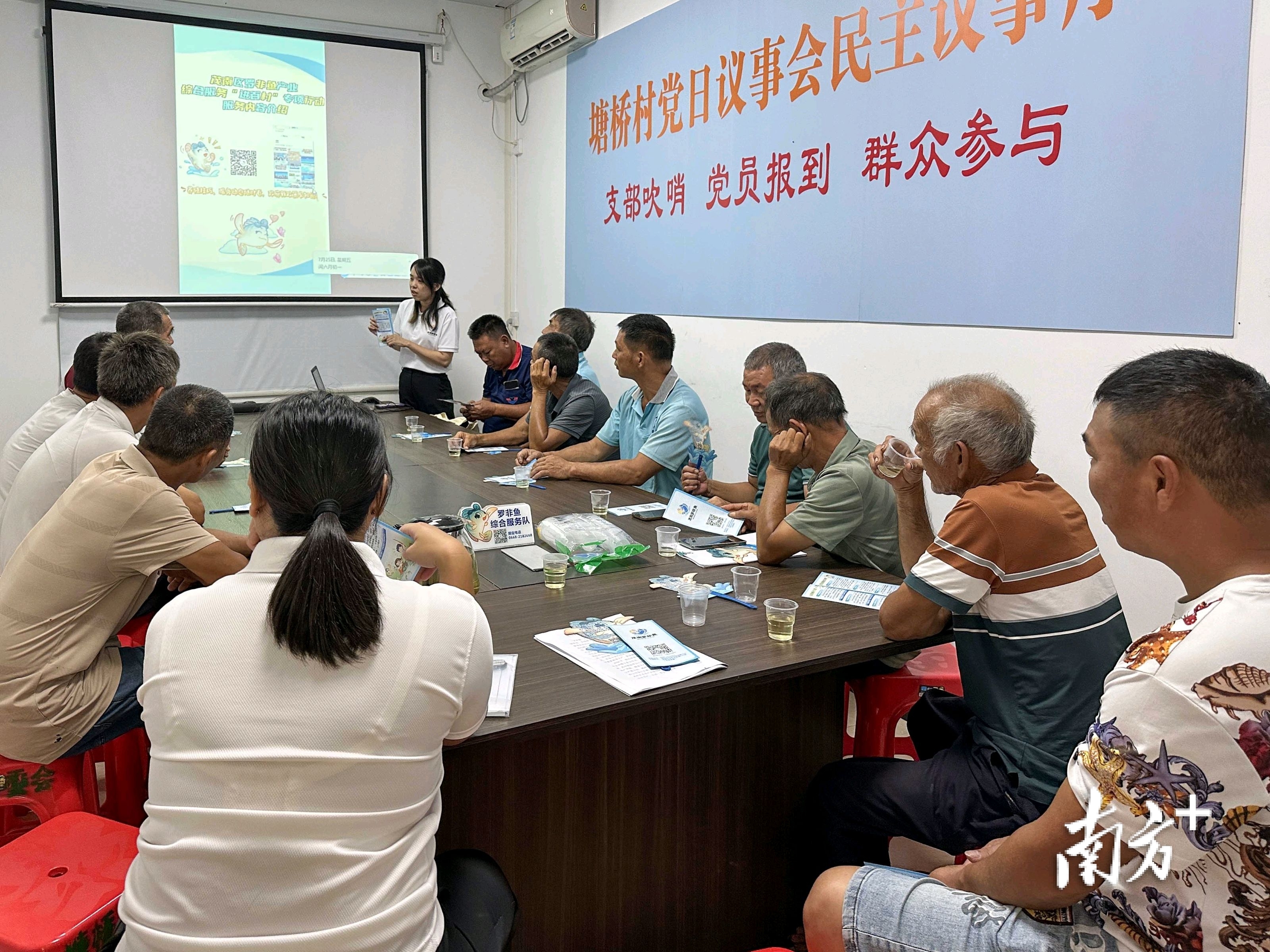 办证、宣讲、培训……一支由农业、金融、政务等多部门人员组成的服务队,带着“一站式”服务包,开启了持续盛夏的进村服务。“专业人员到塘口、服务在村口”的场景,正是茂南区罗非鱼产业综合服务“进百村”专项行动的生动写照。