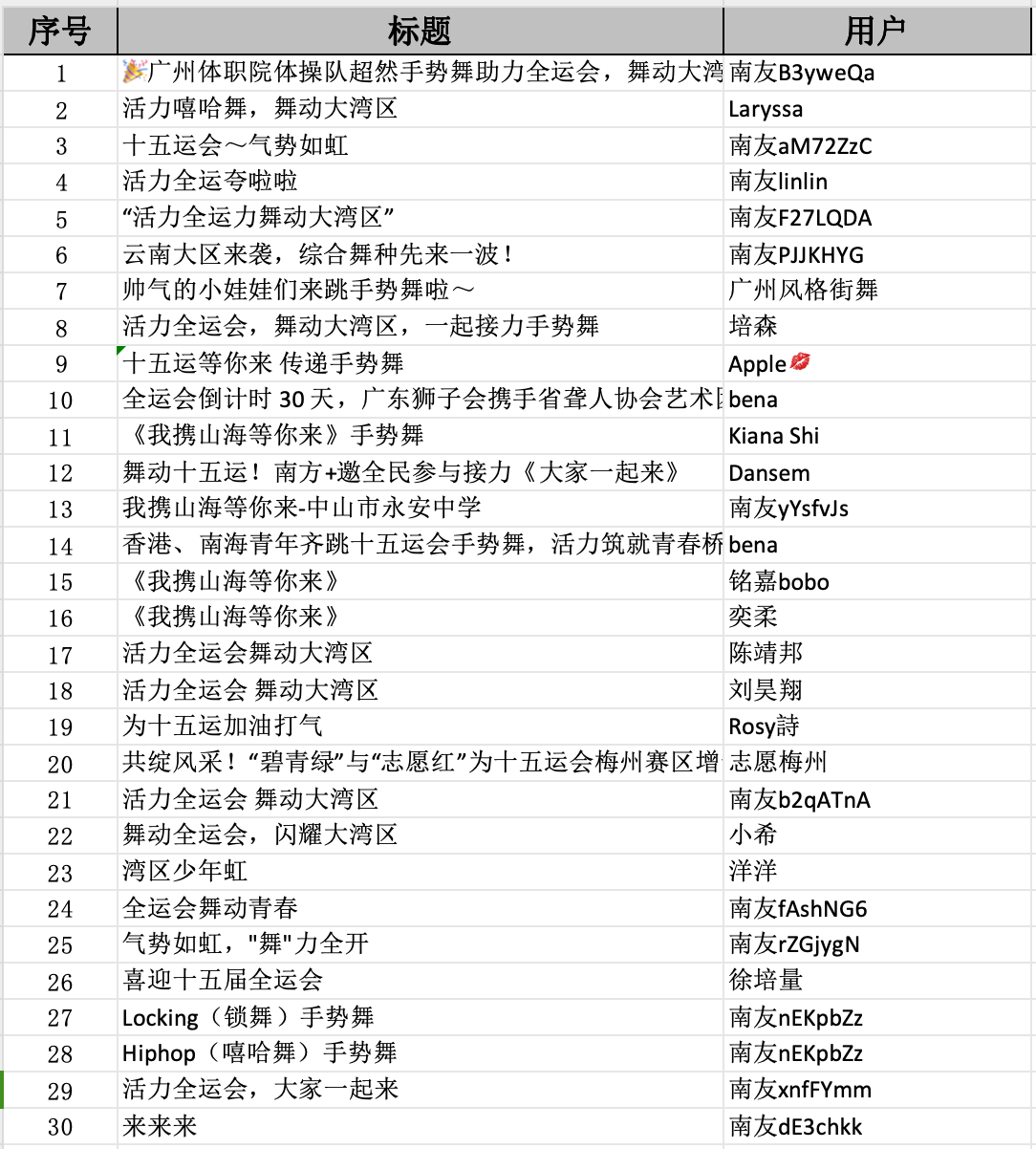 根据点赞人气,共有30位“人气舞者”登顶排行榜,将获得由主办方送出的十五运会系列文创及全运会霹雳舞冠军的签名海报,名单公布如下: