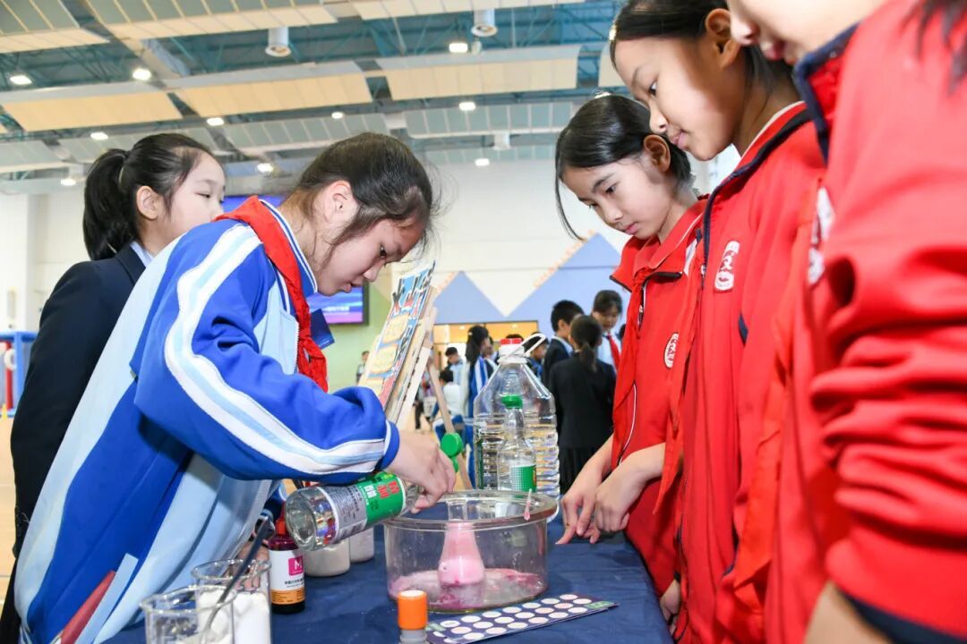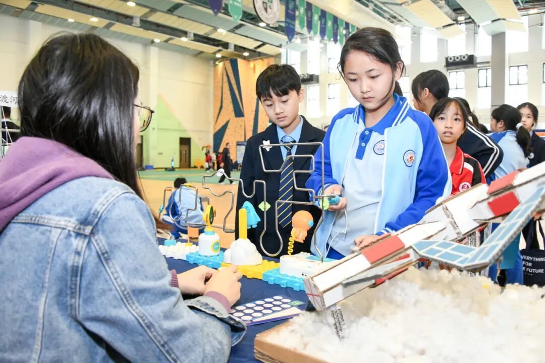 同时,各展位内还设置了不同的科学实验体验项目,包括基础科学实验、生活应用实验等,展示学生的实验技能和科学精神。此外,活动还设有打卡环节,鼓励同学们积极参与互动,凭集章兑换游园纪念奖章或奖品。