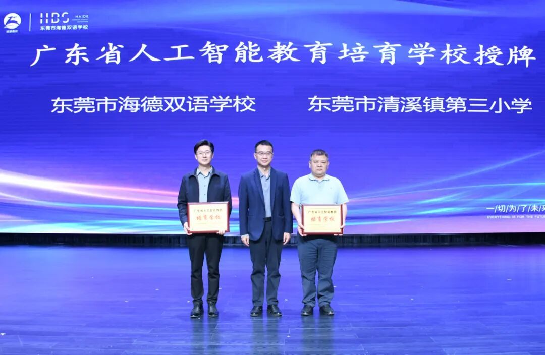 活动期间,现场还为获评为“广东省人工智能教育培育学校”的清溪镇第三小学、海德双语学校授牌。