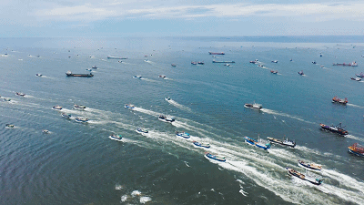 浩浩荡荡的渔船,纷纷驶向大海。图源:南方+客户端