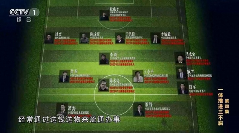 今年1月9日,中纪委联合央视制作的年度反腐专题片《持续发力 纵深推进》播出第四集《一体推进“三不腐”》,报道足球领域系统性、塌方式腐败。通过央视的专题片,近些年来中国足球部分腐败涉案内幕浮出水面,堪称触目惊心。