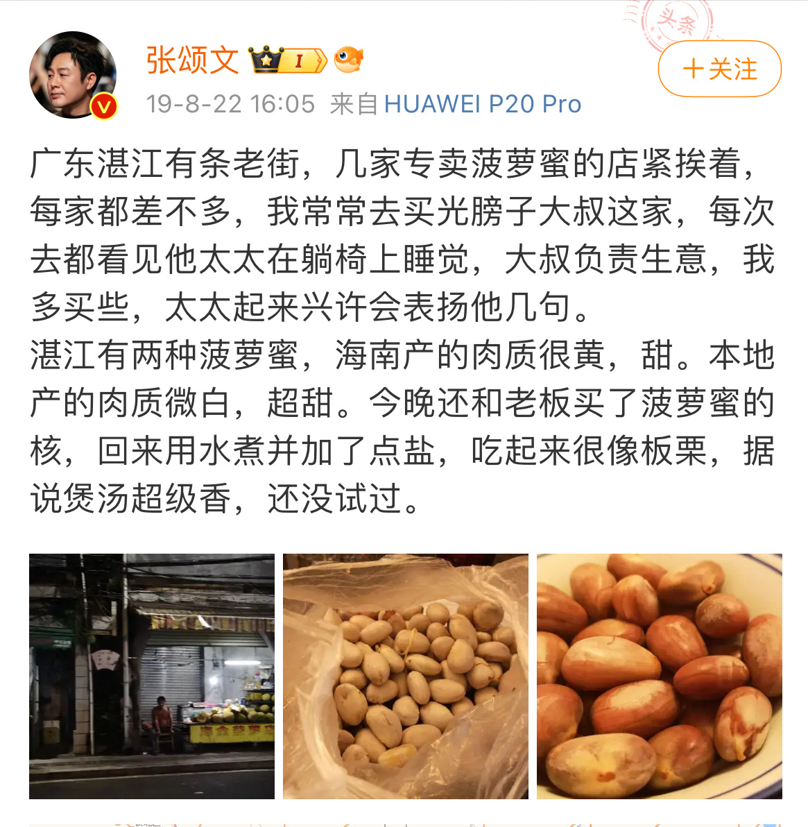 拍摄电视剧《隐秘的角落》时,张颂文在湛江度过了一段美好的时光,当然也吃了不少好东西。
