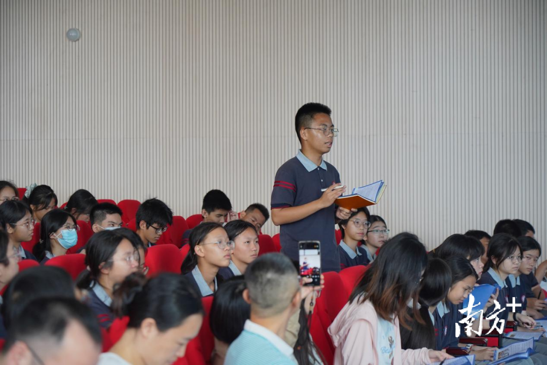 莞未沙田实验中学学子化身“科学小记者”,踊跃向科研人员提问。