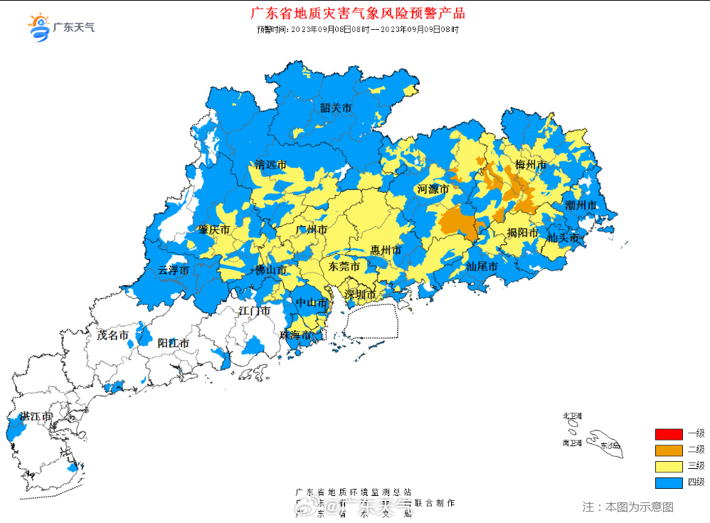 广东省地质灾害气象风险预警。图源:广东天气