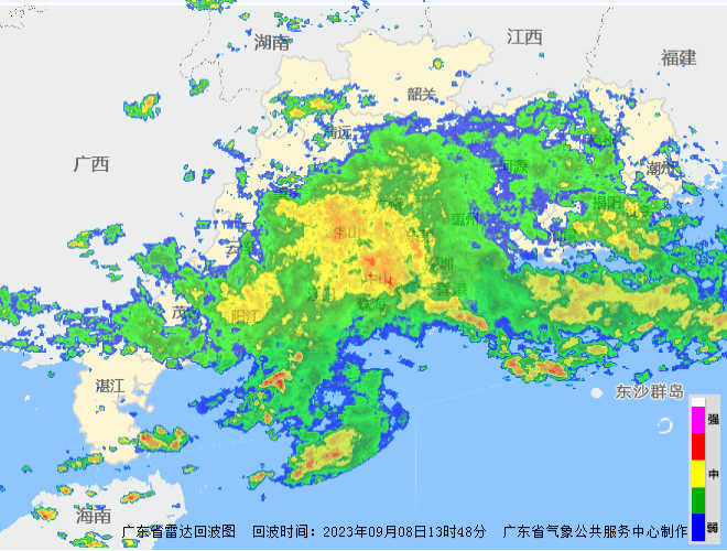 截至9月8日14时,珠三角的强降雨还在继续,降雨量极值或将继续突破。同时,雨带正在西移,粤西多地降雨正增强。