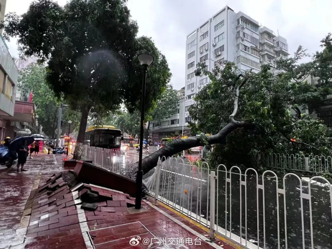 广州越秀区小北路(北行)有大树倒伏。图源:广州交通电台