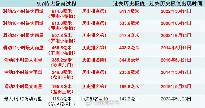 深圳特大暴雨打破7项历史极值。图源:深圳天气