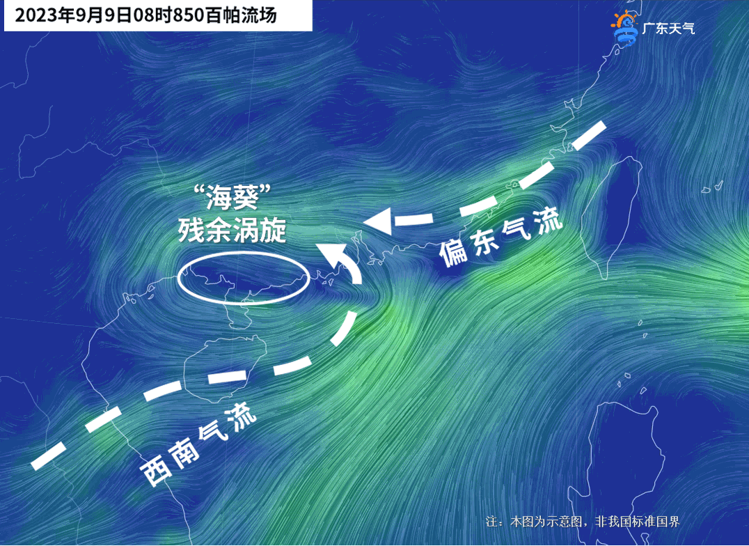 更关键的是,此时西南季风恰好有所增强,从7日夜间起持续向珠三角输送水汽,为“海葵”残余环流带来充足水汽,也帮助维持环流“弱而不死”,一直在广东逗留。