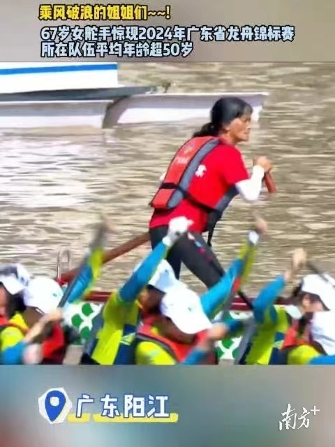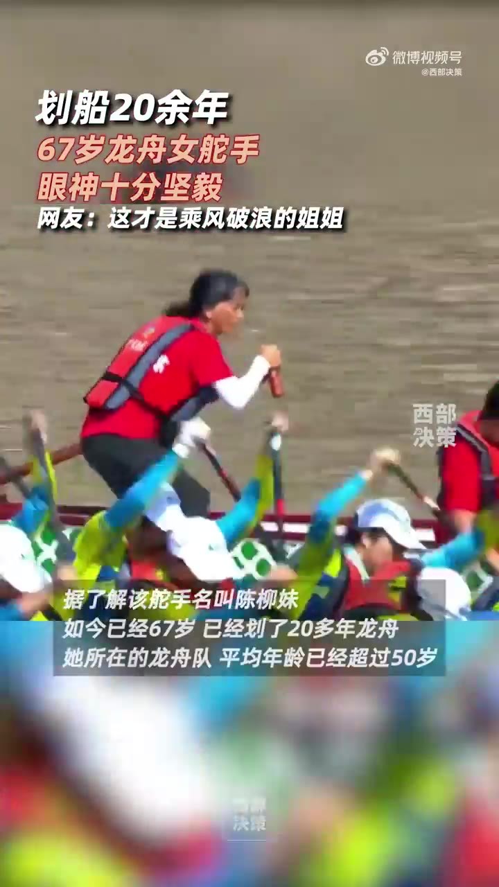 67岁东莞龙舟女舵眼神坚毅太飒了,网友直呼“浪姐”威武!