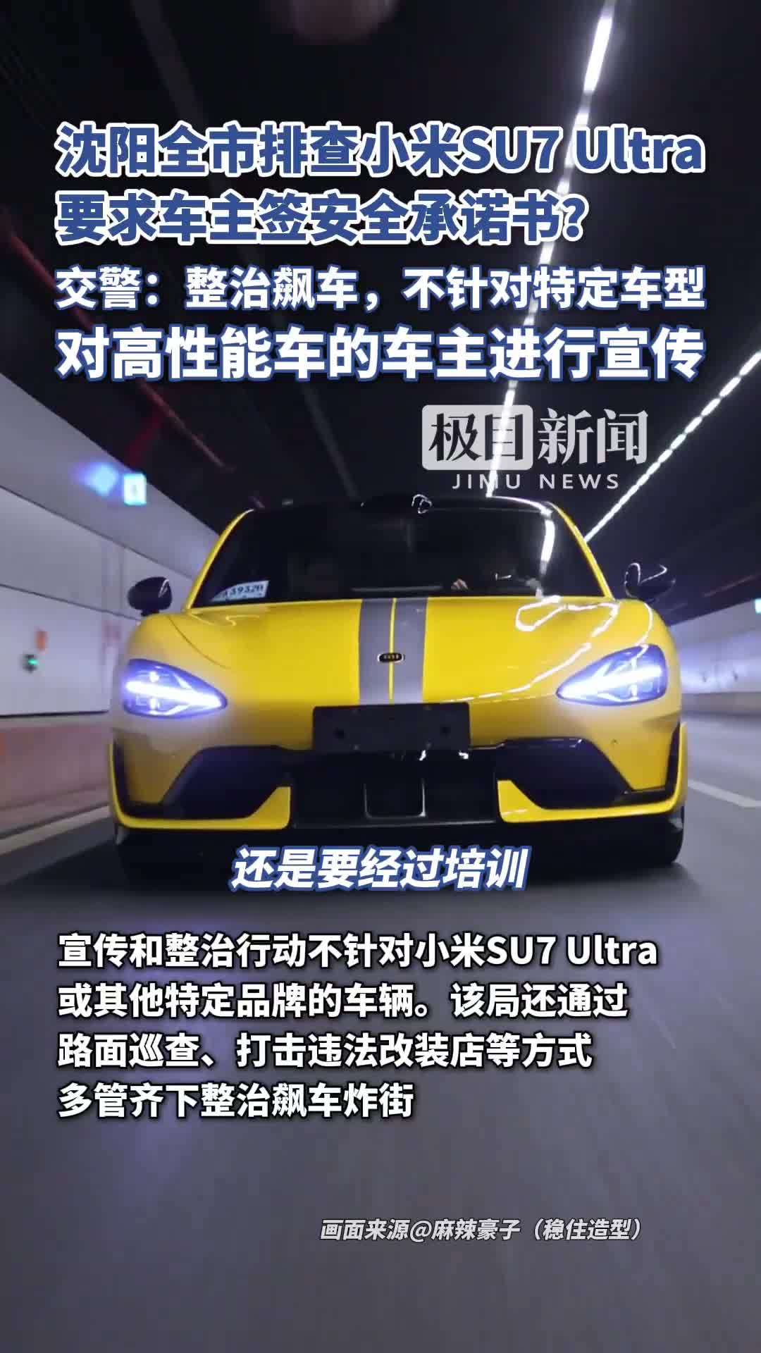 沈阳全市排查小米SU7 Ultra,要求车主签安全承诺书?当地交警澄清