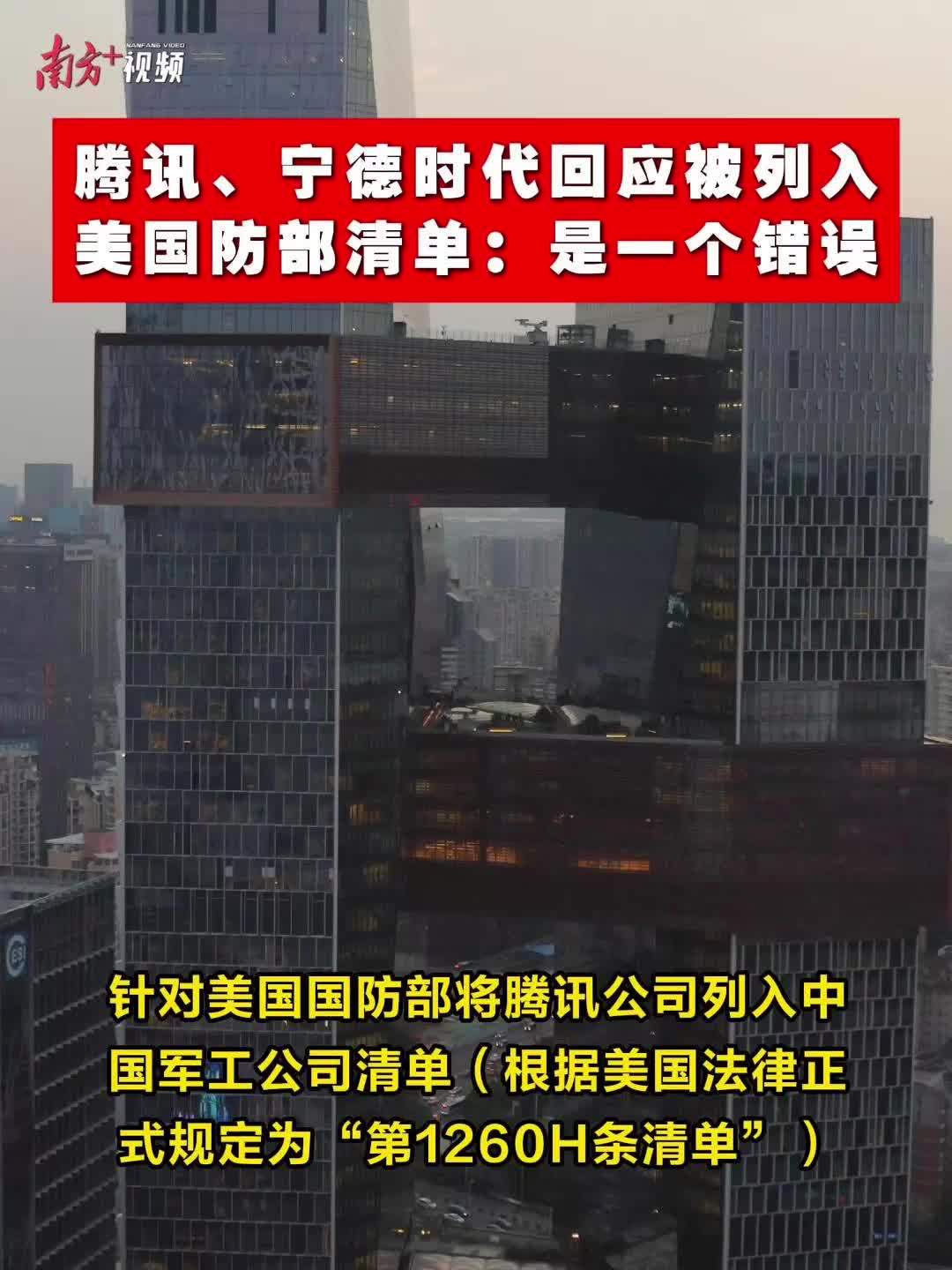 腾讯、宁德时代回应被列入美国防部清单:是一个错误