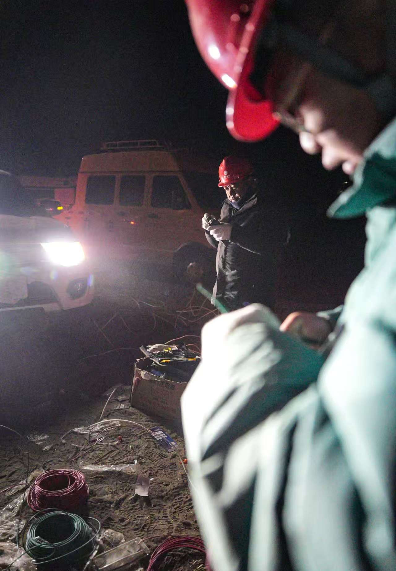 1月7日,在定日县森嘎村安置点,工作人员在抢修电力线路。新华社记者 晋美多吉 摄