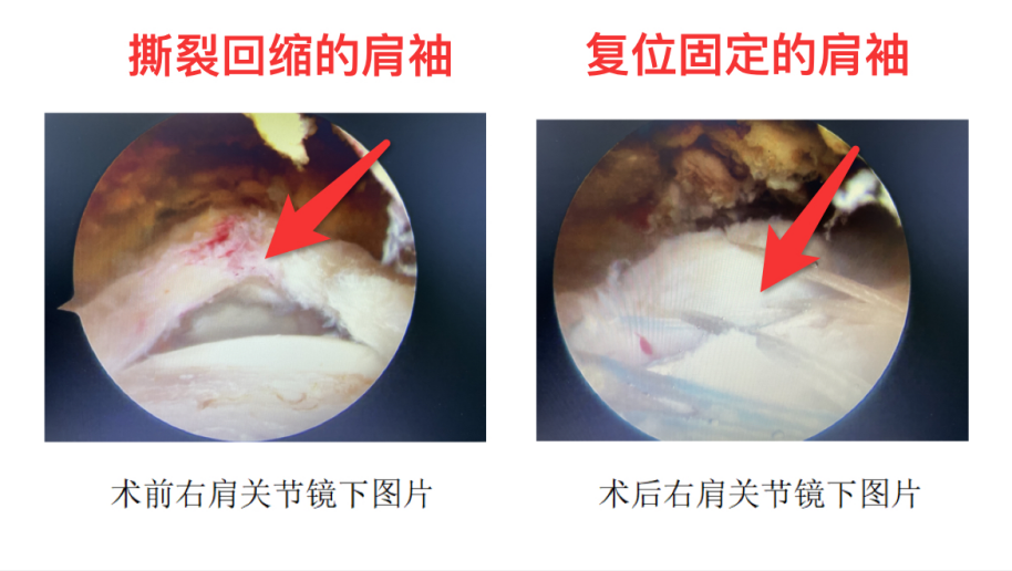 ②手术治疗:对于完全撕裂、保守治疗3—6个月无效、巨大撕裂,或年轻急性损伤患者,手术是唯一能有效修复肌腱、恢复功能的方法。关节镜下肩袖缝合修补术是目前国际上的“金标准”术式。