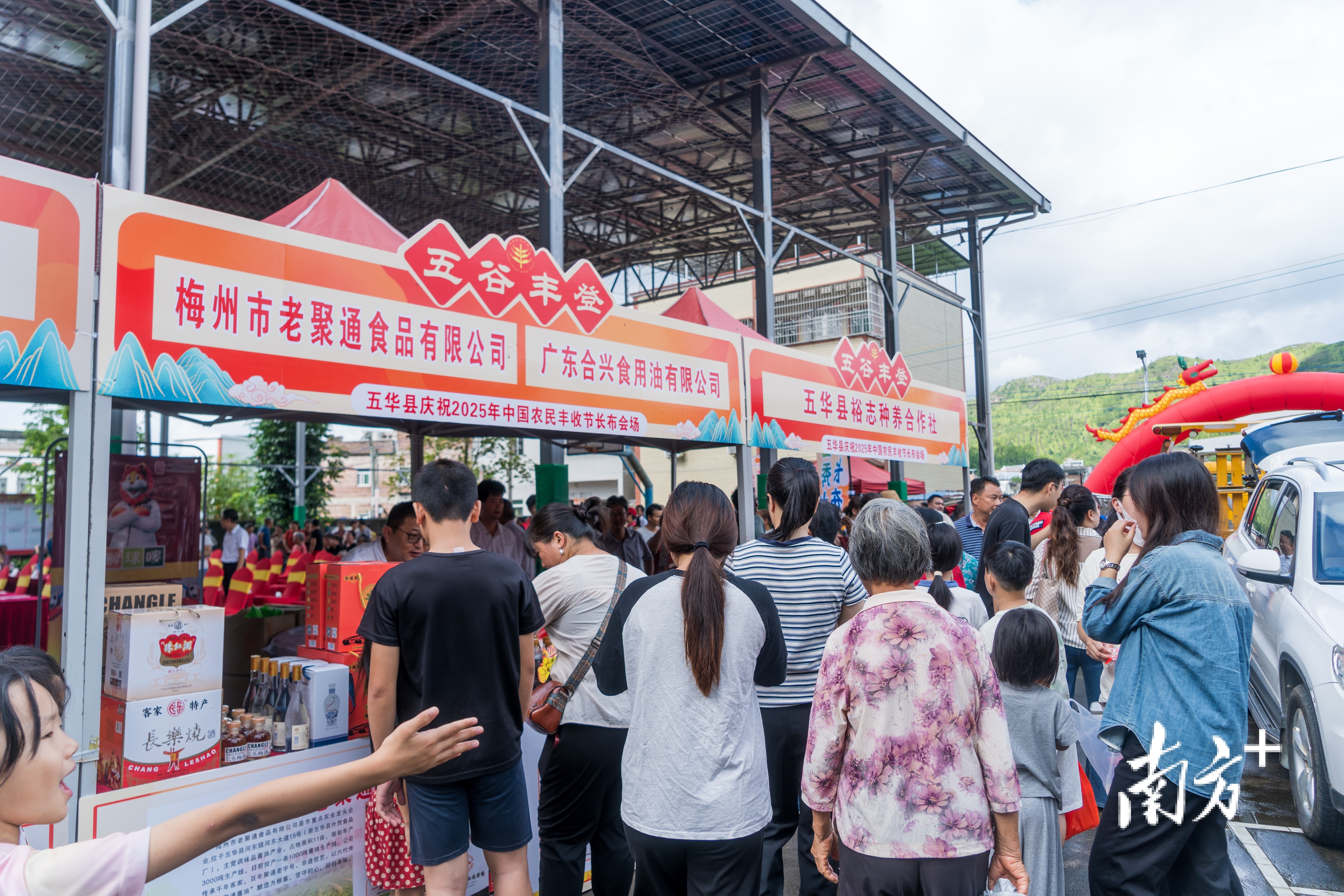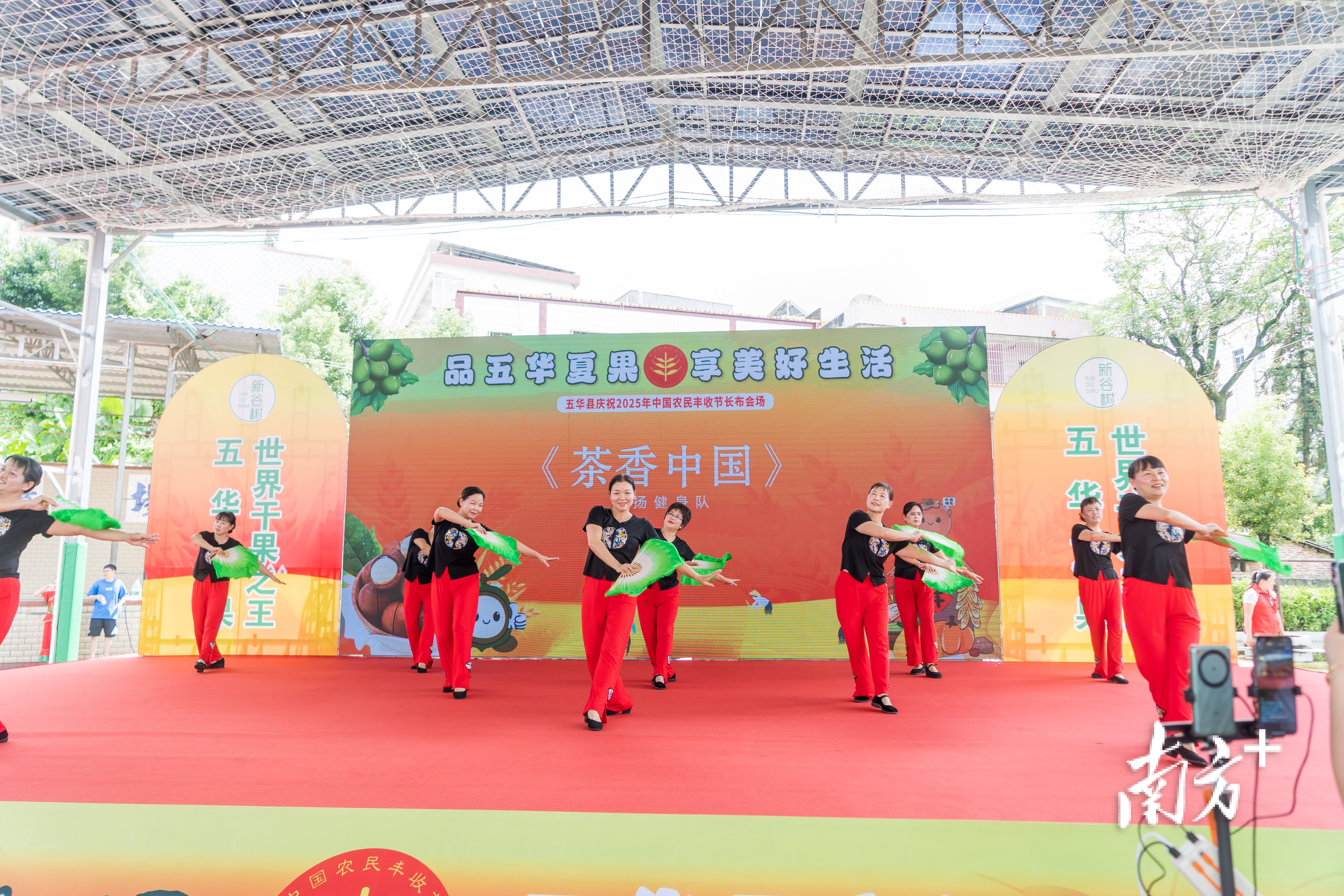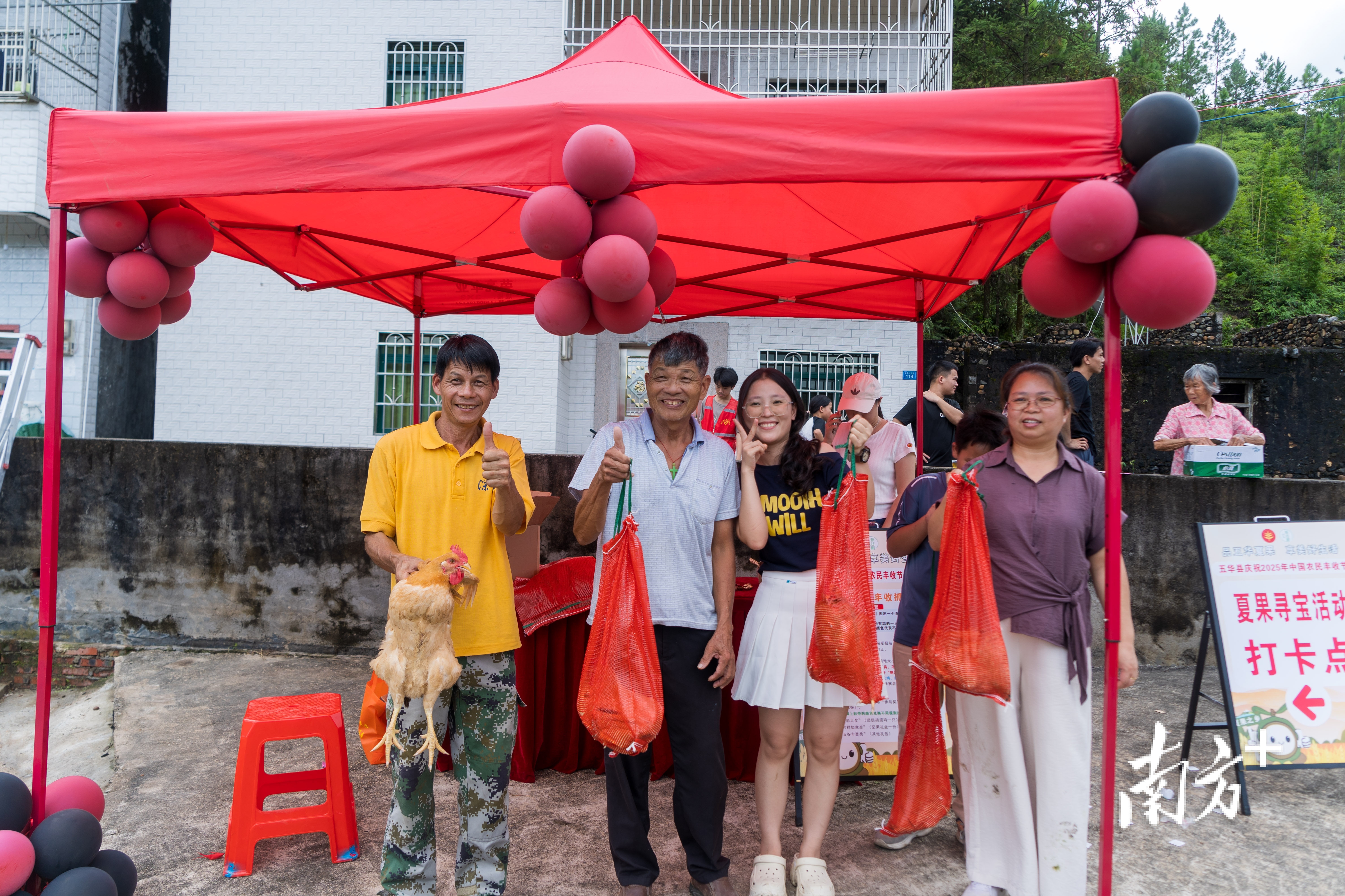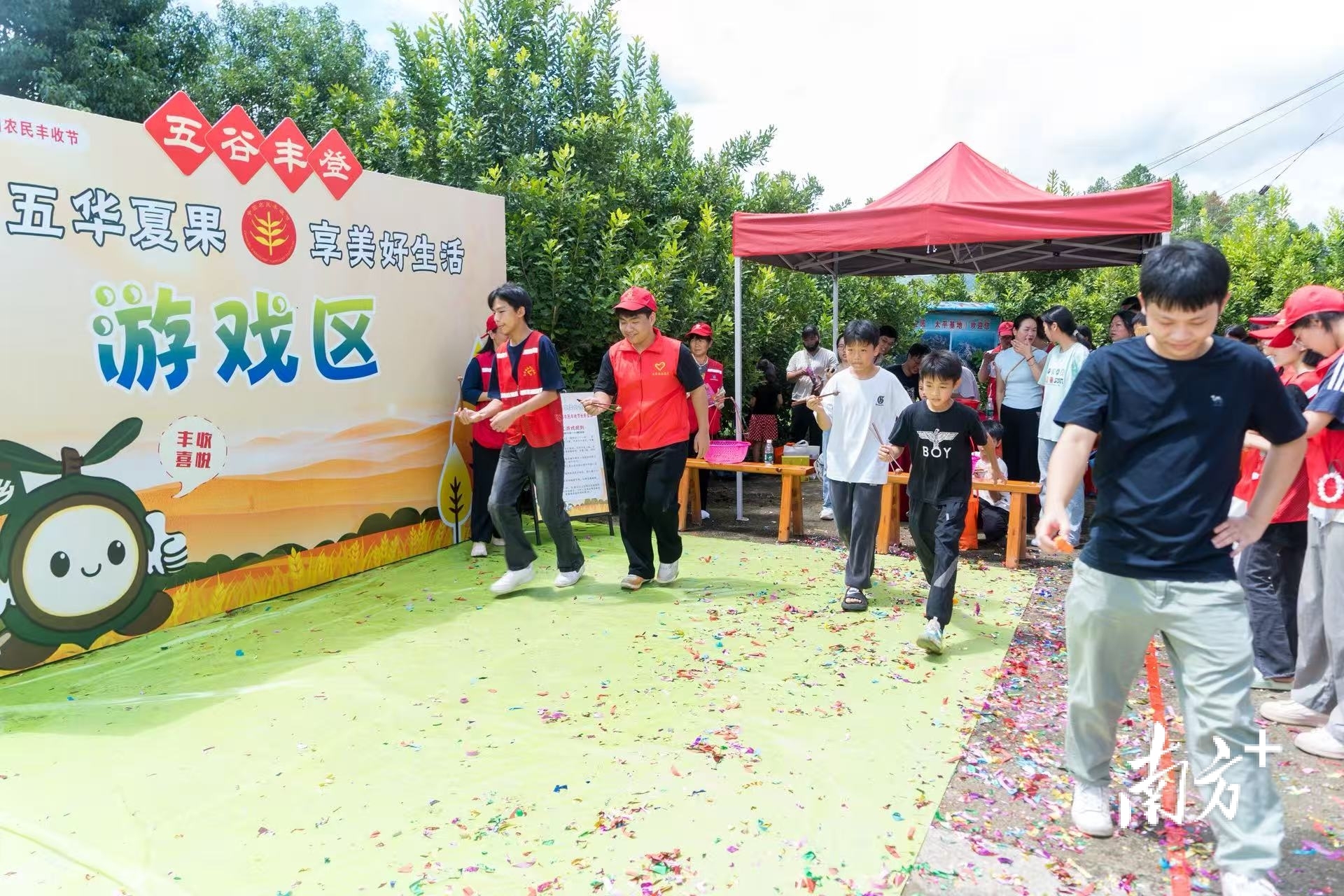 会场一侧的特色展区与互动区域人气高涨,在五华夏果农产品与长布特色美食展区,饱满圆润的夏果与客家特色的盐焗鸡、酱油、茶叶等美食整齐陈列,商户热情邀请群众驻足品鉴,让大家在舌尖上感受丰收的甜蜜。在趣味游戏区,“夏果搬运工”“夏果寻宝活动”“吉祥如意 丰收抓抓乐”等互动性十足,参与者在欢声笑语中挑战游戏,赢取惊喜好礼。此外,太平村“五华夏果”基地也向公众开放,市民朋友们穿梭林间,体验亲手采摘的乐趣,感受田园之乐。