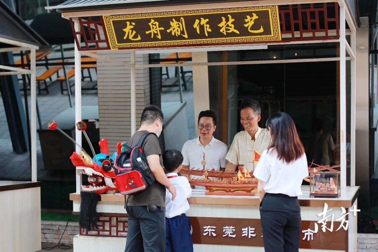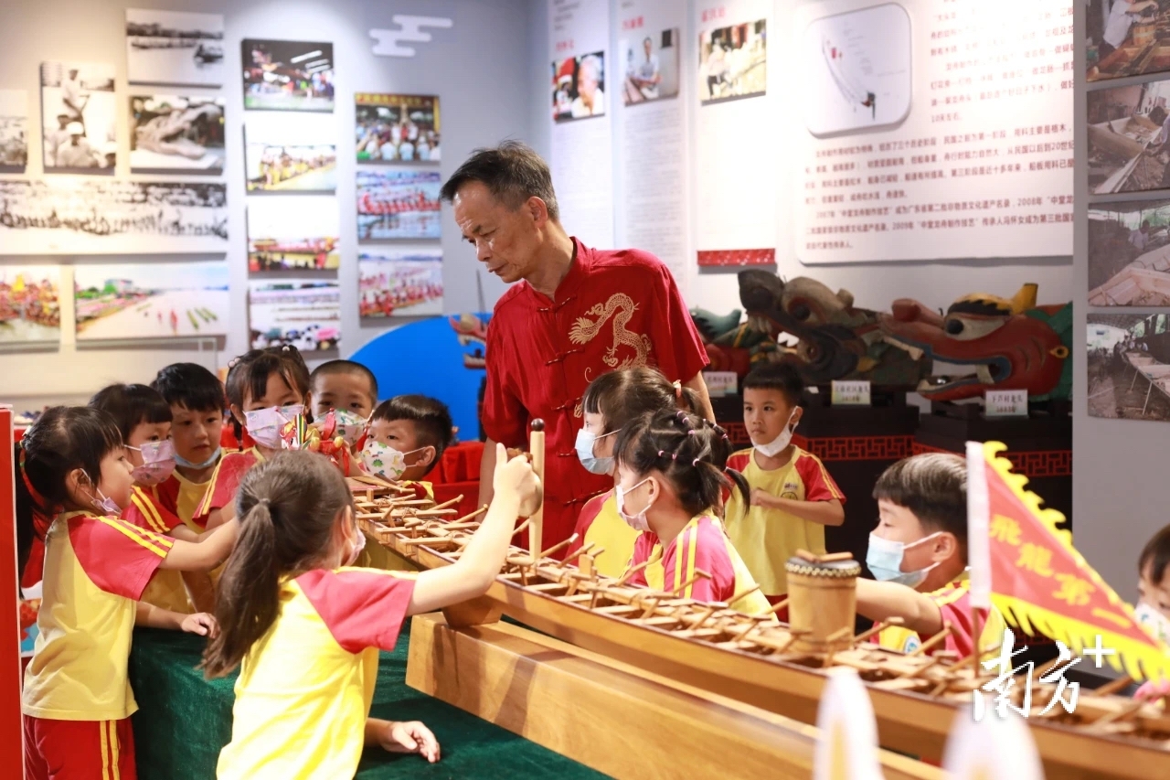 随着非遗保护和传播意识的普及,冯沛朝又积极投入到龙舟文化的活态传承中。自2010年起,他沿用传统大头龙的制作工序,制作等比例缩小的精美龙舟工艺品,广受群众喜爱;同时促进文旅融合,线下参加非遗墟市,线上开展直播和公开课,广泛推动了项目的社会传播。