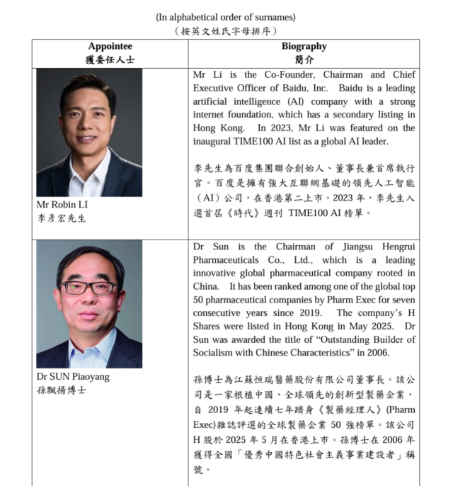 3月24日,香港特区政府宣布委任4名特首顾问团新成员,包括百度集团联合创始人李彦宏,江苏恒瑞医药股份有限公司董事长孙飘扬,赛昉半导体科技有限公司创始人兼行政总裁徐滔,壁仞科技创始人、董事长兼首席执行官张文。详情>>
