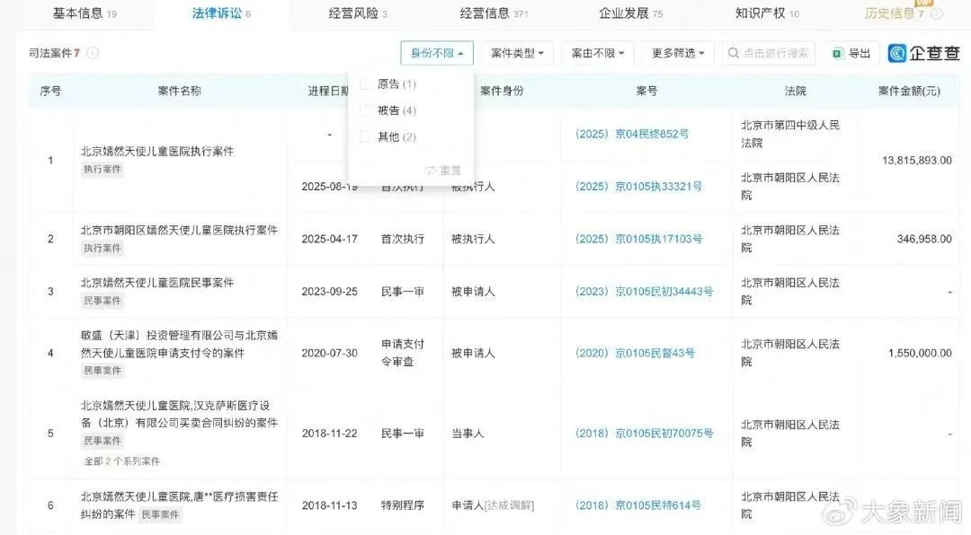 当前,该医院名下涉多起司法案件,多为被告身份。