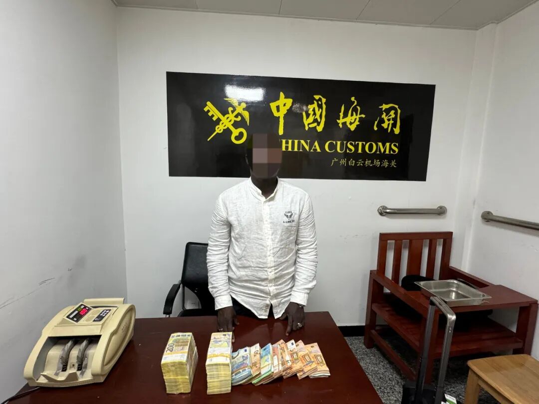 据海关发布10月2日消息,近日,广州海关在广州白云机场口岸旅检渠道查获1名旅客违规超量携带货币进境,现场查获未向海关申报的43.59万欧元,折合人民币超360万元。