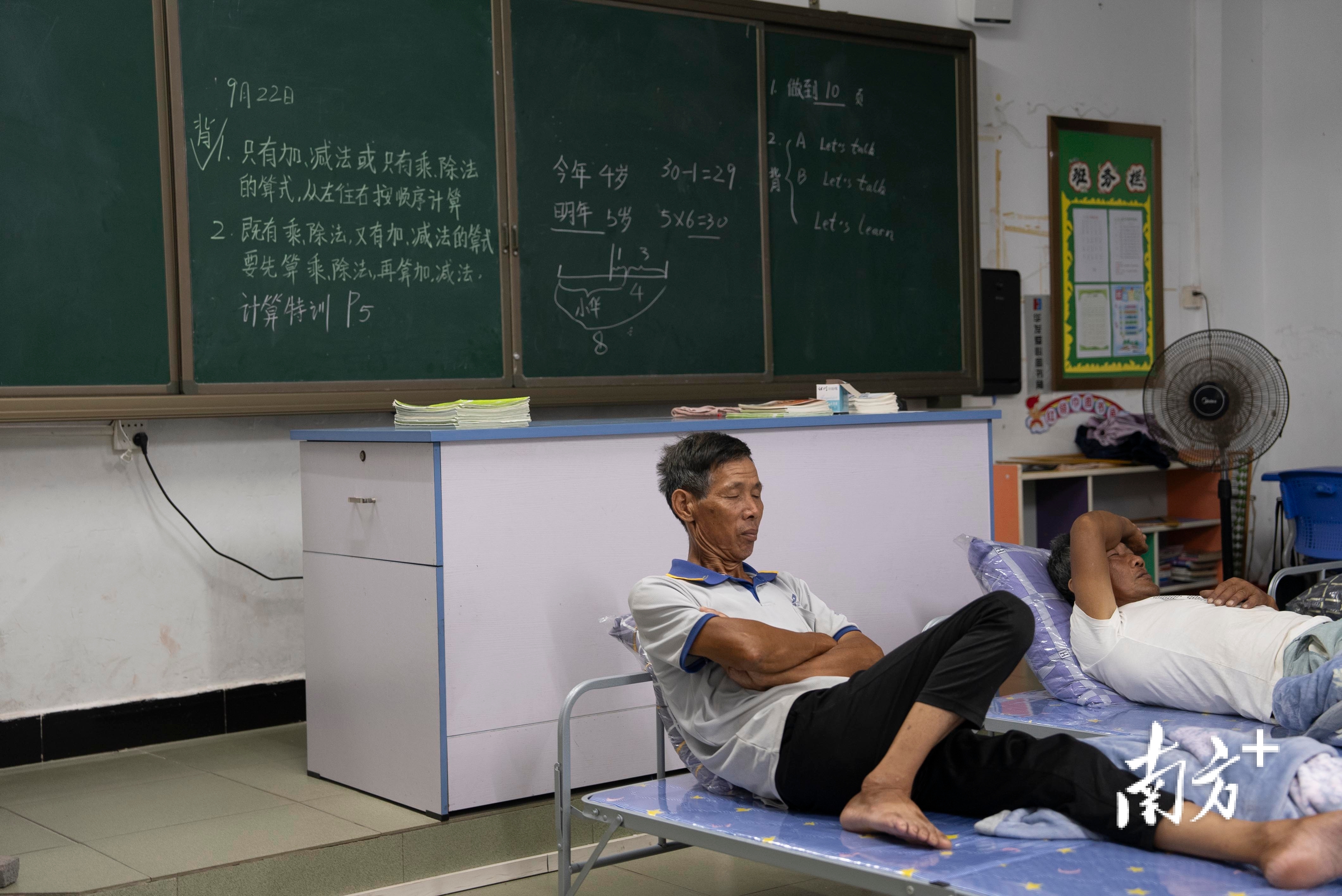 深夜,今年66岁的周树秋还没睡下,他给仍在老家浙江丽水的家人打了一通电话,“到安置点啦,可以放心了。”周树秋来广东已三十个年头,到阳江养虾也已十余年。提起自己所经历过的台风,周树秋却显得有些淡定,在海边多年,他见过不少风浪,但像这次这样离开下塘来避风,对他来说却是第一次。