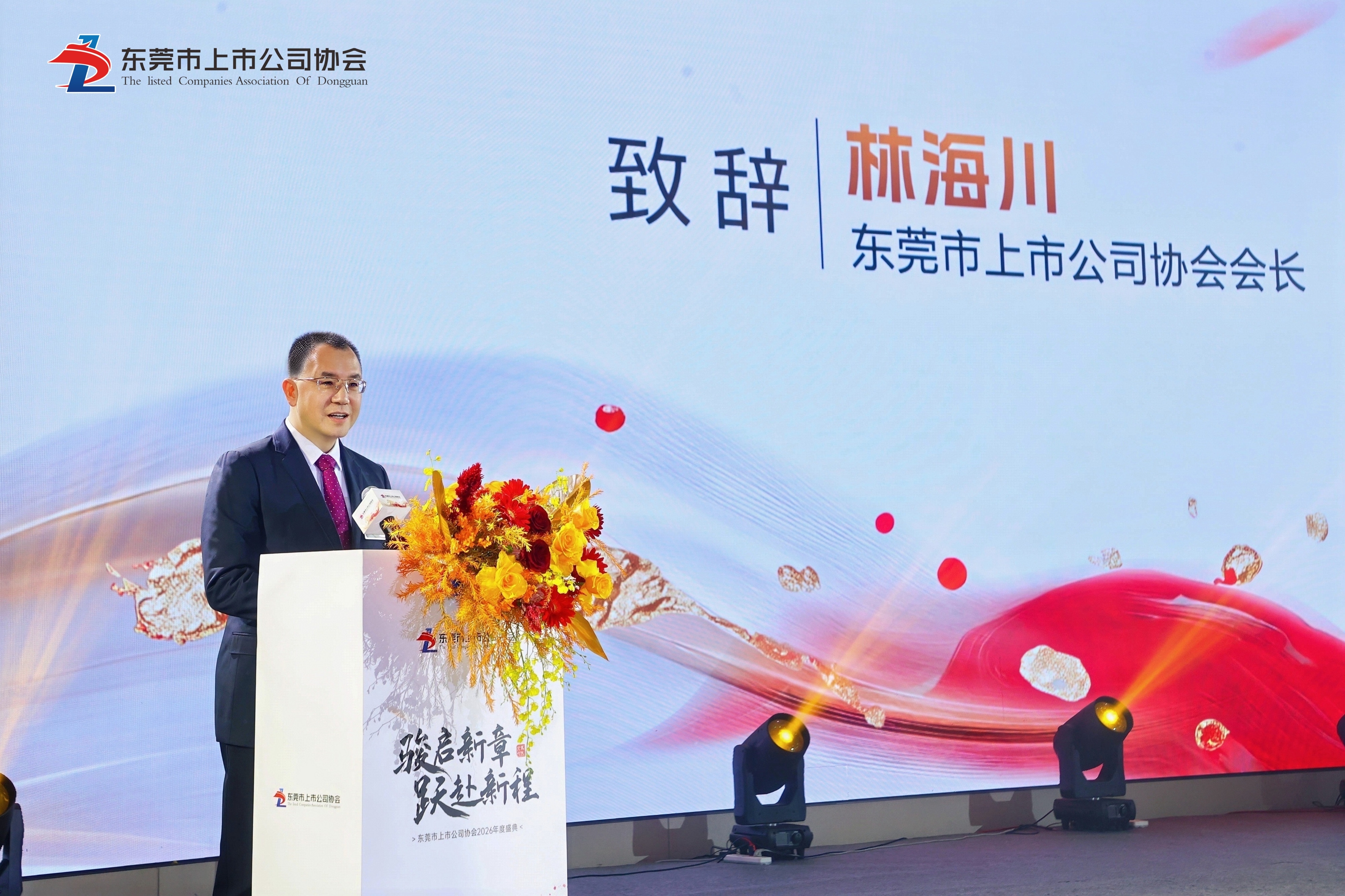 东莞市上市公司协会会长林海川在致辞中表示,作为“双万”城市,东莞迈向更高能级发展离不开资本市场的关键支撑。他号召会员企业:既要提升“眼力”,前瞻创新;也要扎实“脚力”,深耕主业,共同擦亮“东莞板块”品牌,助力城市高质量发展。新的一年,协会将聚焦会员需求,优化服务、搭建平台,增强会员获得感,携手各界共赴新程、同攀高峰,推动东莞从“双万”向GDP、人口、上市公司市值“三个万亿”并进的“三万”新城跨越。