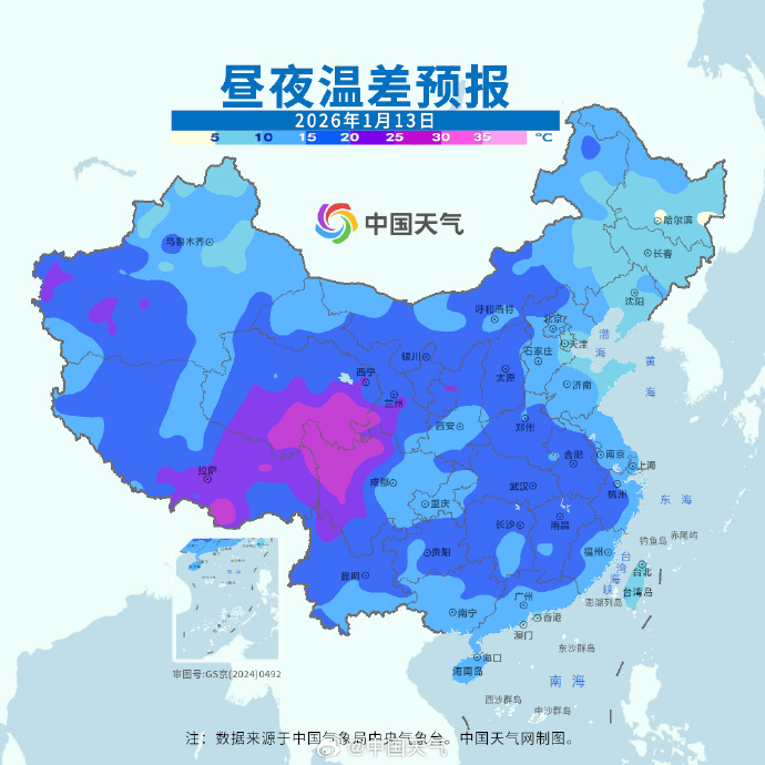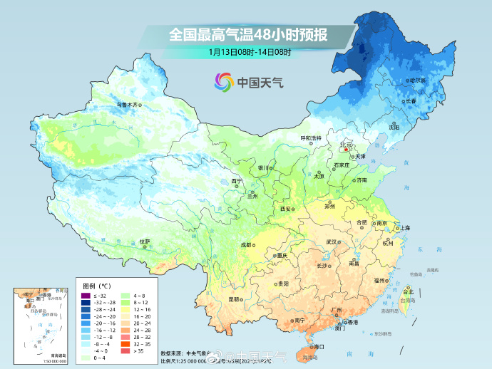 今天(1月13日)一直到本周五,中国大部将在“三九”期间体验春日般的温暖。本周冷空气虽然仍会活跃,但强度较弱、影响范围偏北,对于华北及以南大部地区来说,昨天(12日)开始已经进入波动回暖通道。