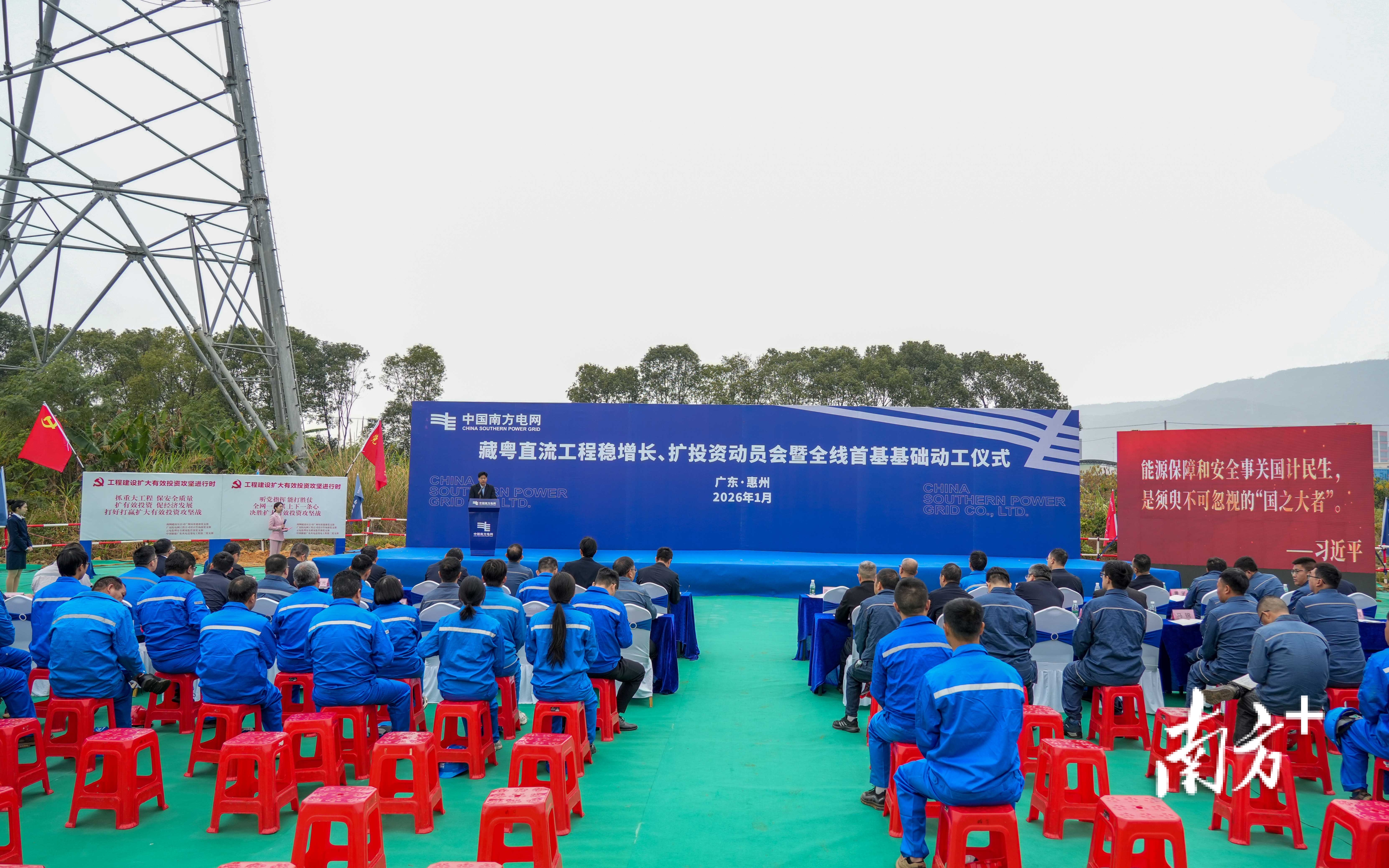 1月20日,藏粤直流工程稳增长、扩投资动员会暨广东段首基基础开挖仪式在广东省博罗县举行,标志着工程广东段线路正式进入建设阶段,为藏粤直流这个跨区域清洁电力输送“超级工程”,架起一条以柔性直流互联的“电力高速公路”,在加大电网基础设施投资中发挥重大作用。