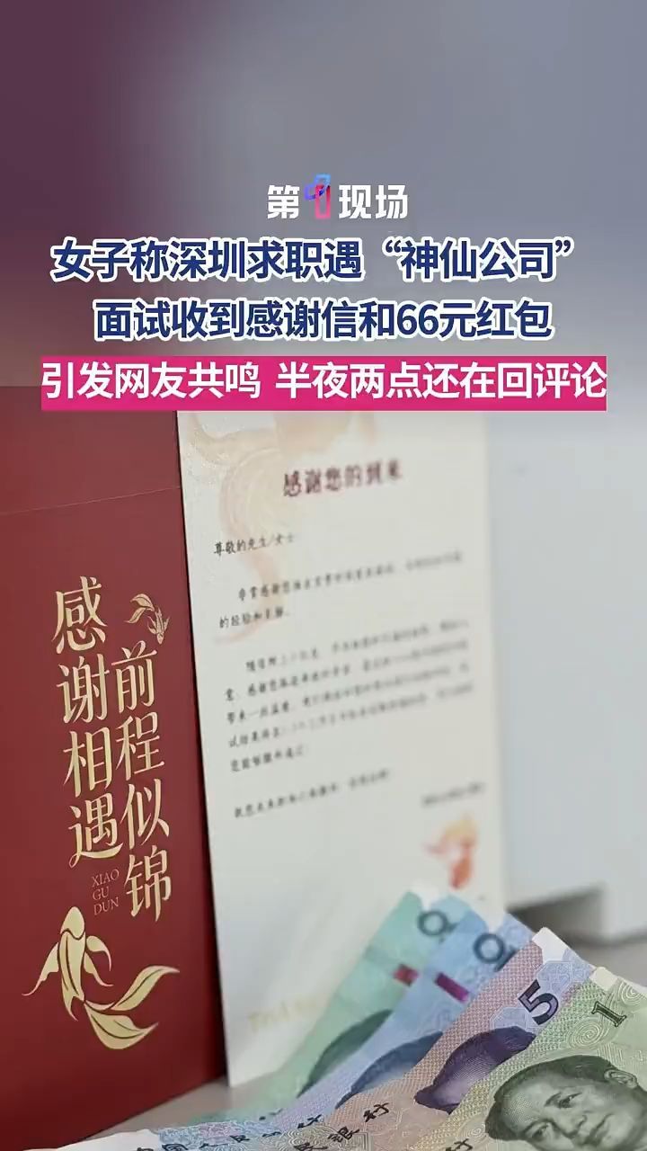 女子深圳求职收到“神仙公司”66元红包及感谢信!公司回应