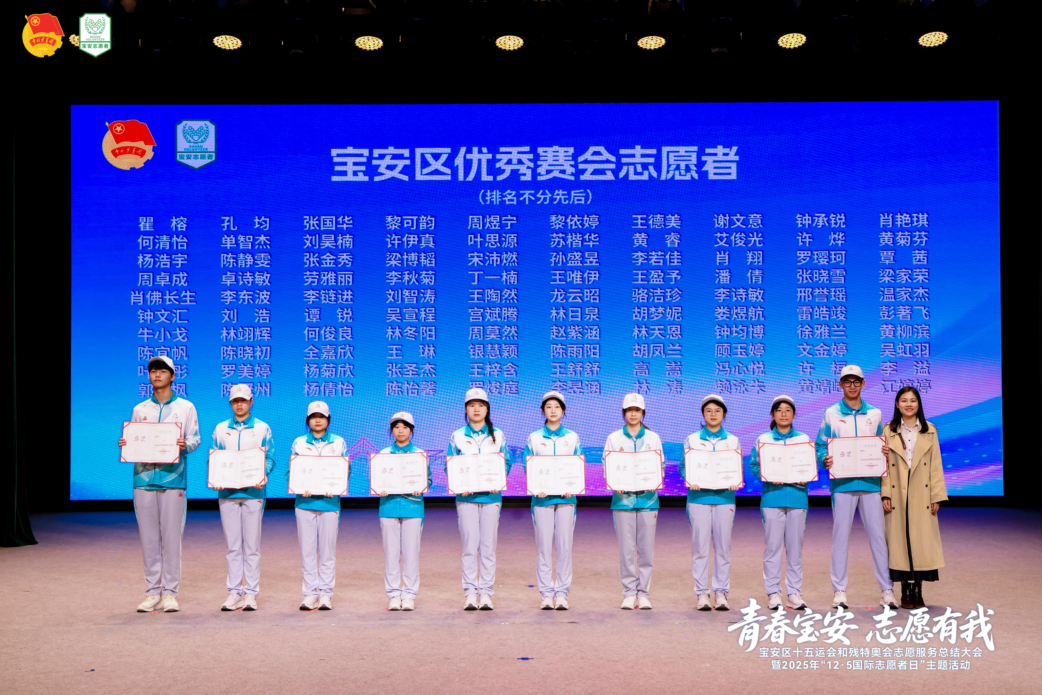 12月19日,宝安区十五运会和残特奥会志愿服务总结大会暨2025年“12·5国际志愿者日”主题活动在宝安青少年宫举行。