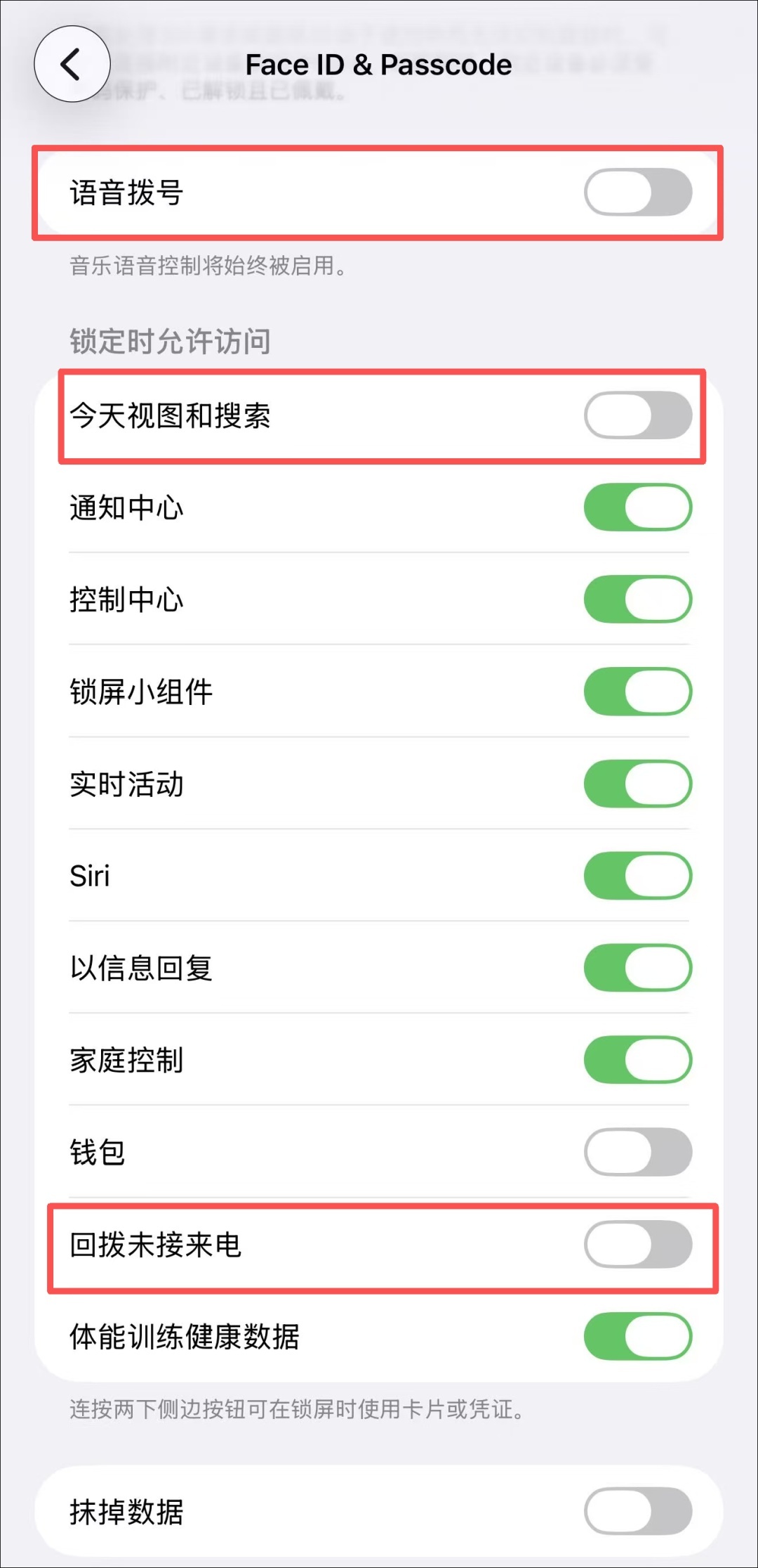 Apple专家还建议前往「设置 - 面容 ID 与密码」界面,关闭以下几个选项,如果还是异常,可再联系升级到工程部调查。