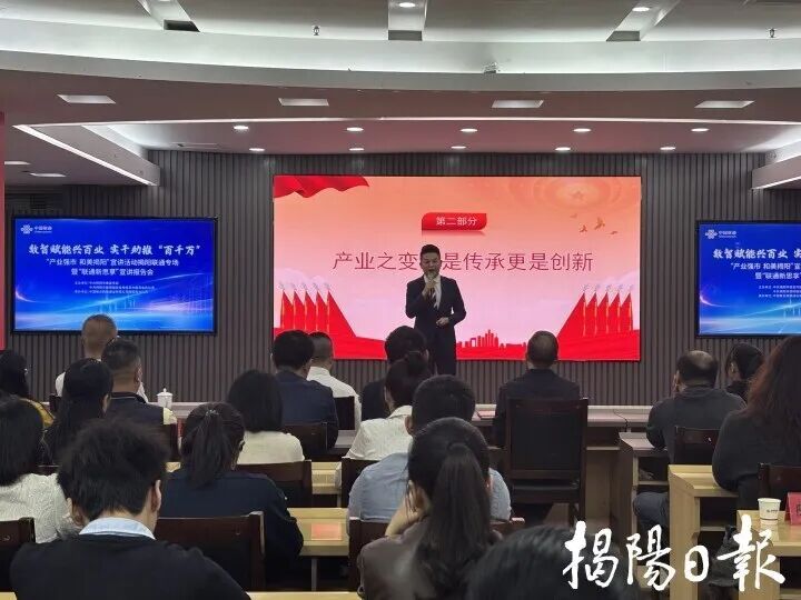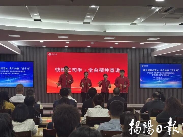 19日上午,市委宣传部、市委网信办、中国联通揭阳分公司联合举办“产业强市 和美揭阳”宣讲活动揭阳联通专场暨“联通新思享”宣讲报告会。来自基层一线的宣讲员用一个个鲜活故事、一幕幕实干场景,生动展现揭阳在推进“百千万工程”中的生动实践与丰硕成果,凝聚起全市上下同心同德、实干争先的强大合力。