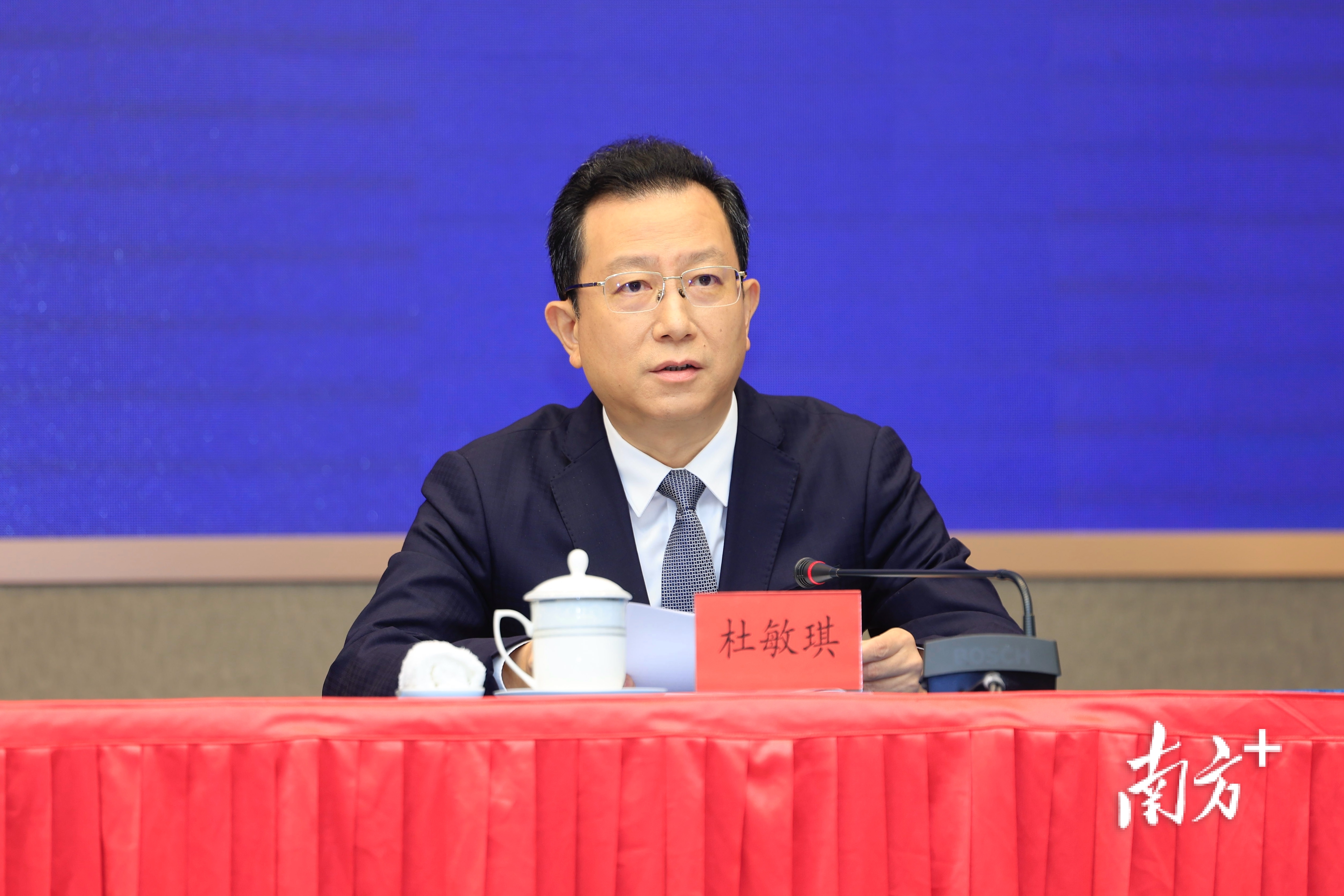 在现场,省人力资源社会保障厅厅长杜敏琪介绍扩大线上技能培训优质供给情况。