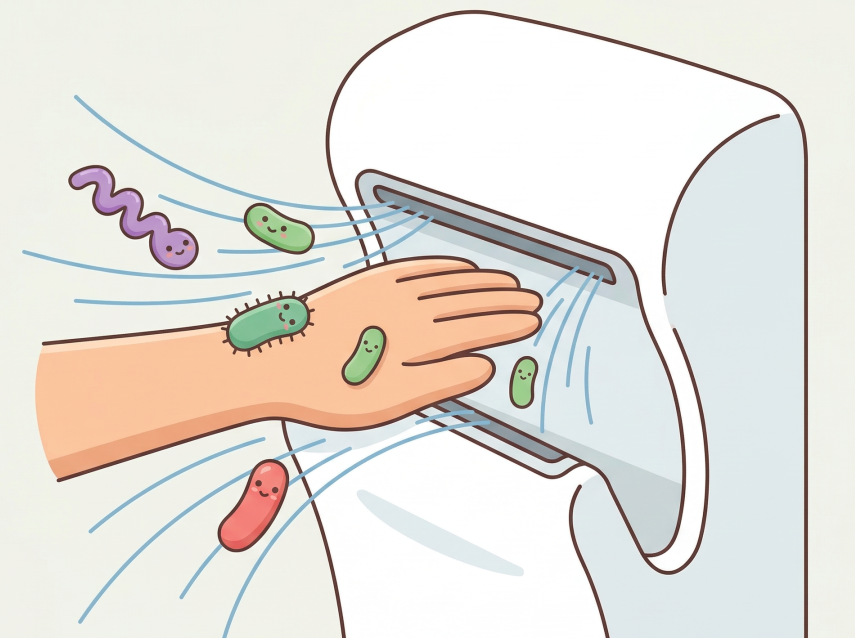 研究团队认为,暖风干手机的温度不会很高,所以杀菌是杀不死的,吹干手也不会很快。这就导致很多人马马虎虎吹几秒就结束了,最终两只手是半湿半干、温度适宜,反而很适合残菌生长。
