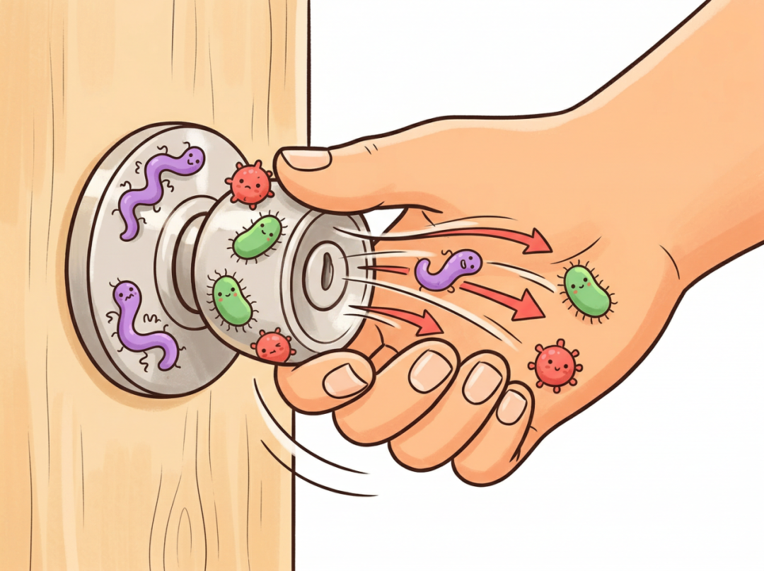 另一种叫暂住菌,常见的有大肠杆菌、沙门氏菌、诺如病毒等,都是有可能闹事的坏东西。在我们按电梯、拿外卖、上厕所时,这些“偷渡客”就悄悄跑到了手上,伺机作祟。