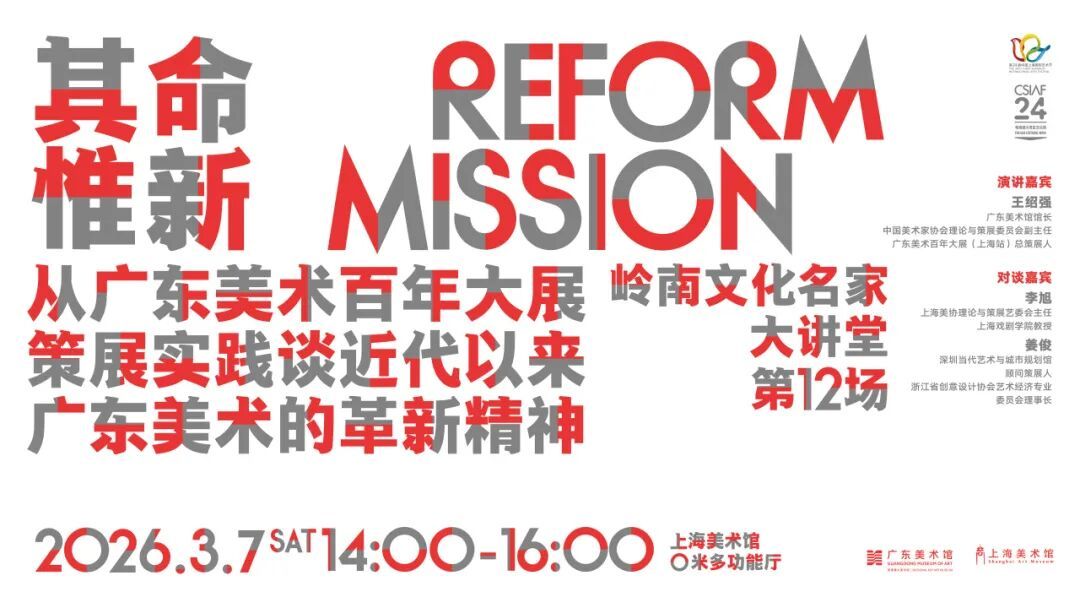 2026年3月7日(本周六),“岭南文化名家大讲堂” 第十二场与您相约,听总策展人——广东美术馆馆长王绍强深度解读广东美术百年大展的策划逻辑与思考。