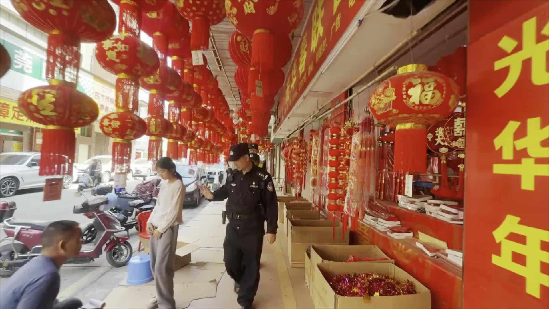 “老板您好,生意挺好吧,有什么需要我们帮助的吗?”兴龙派出所新维警务室警长黄仲林热情地向群众打招呼、问需求。他带队穿梭于街巷之间,同步开展巡逻防控与安全防范宣传,及时排查隐患、帮助群众。春节前后,他带领辅警、义警坚守岗位,把平安服务送到群众家门口。