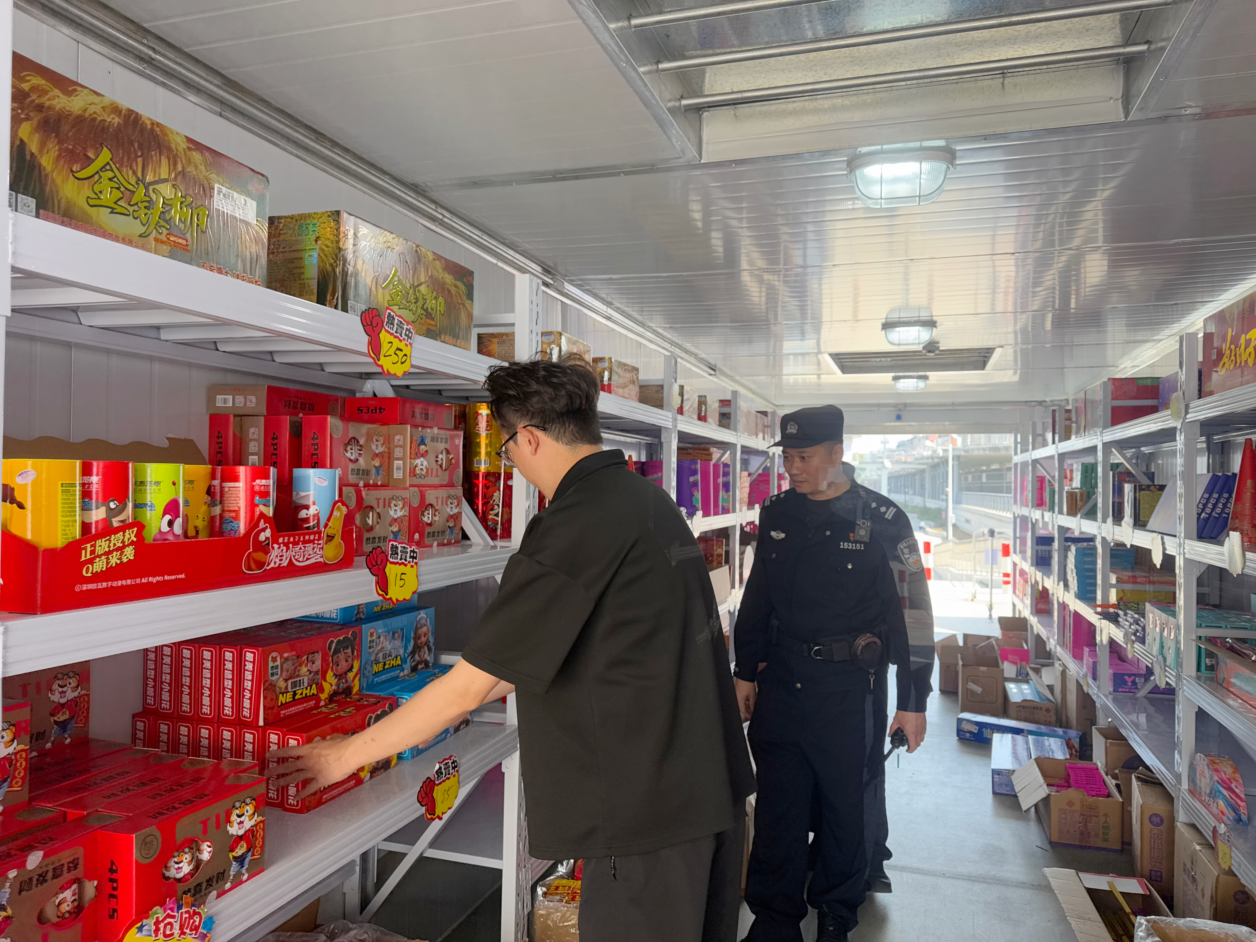 除了老城街巷,安全防范触角延伸至每一处重点区域。在石龙南岸公园烟花鞭炮指定销售燃放点,兴龙派出所民警陈涛带队开展例行检查与巡防,细致核查销售情况、宣讲安全规范,反复叮嘱店主严格落实安全要求,把风险隐患消除在萌芽状态。