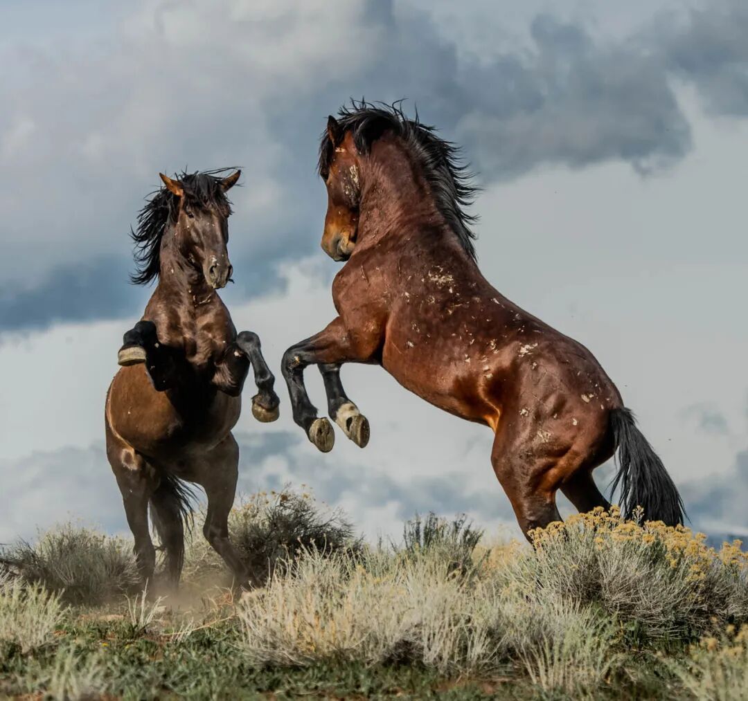 16世纪西班牙人登陆北美大陆,迅速地在墨西哥和美国西南部类似欧亚草原的大草原上定居,并带来了马和其他牲畜,如今的五万匹美洲野马就是哥伦布带去的25匹马的后代。《马到功成》拍摄到了两个美洲野马群鏖战一日的珍贵画面。马是一种群居动物,它们会像人一样合作、竞争,在一起玩耍。和许多群居动物不同,马还好斗——种马和带着马驹的母马尤其如此——它们会以雷霆万钧之势用后蹄重踹对手。