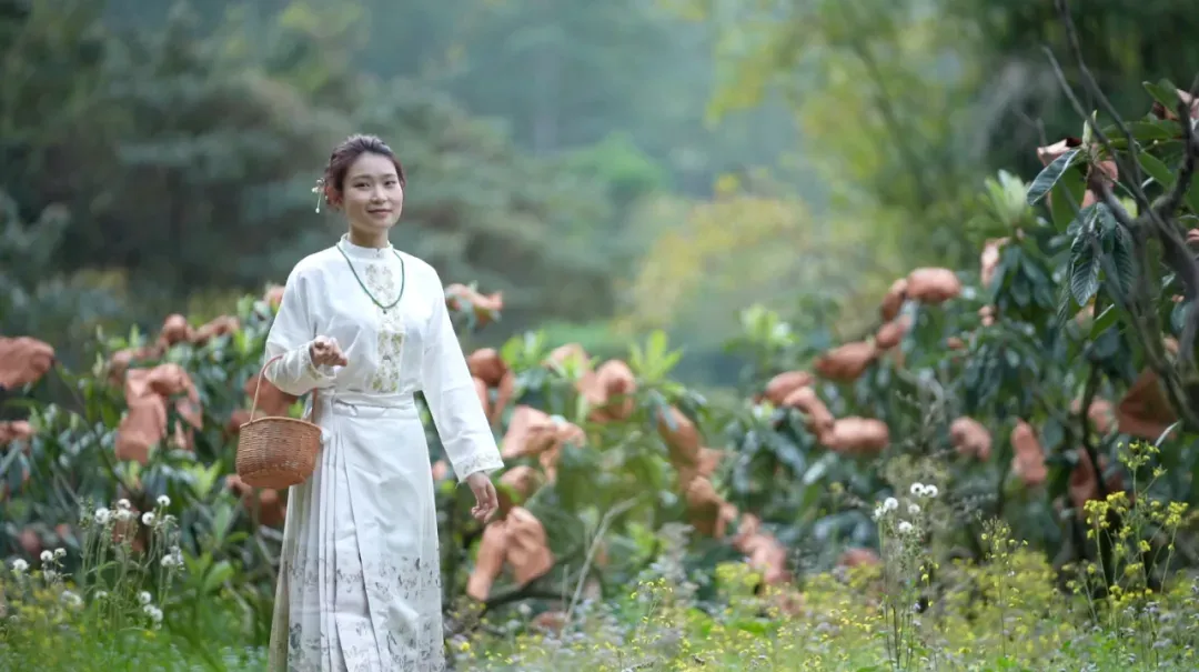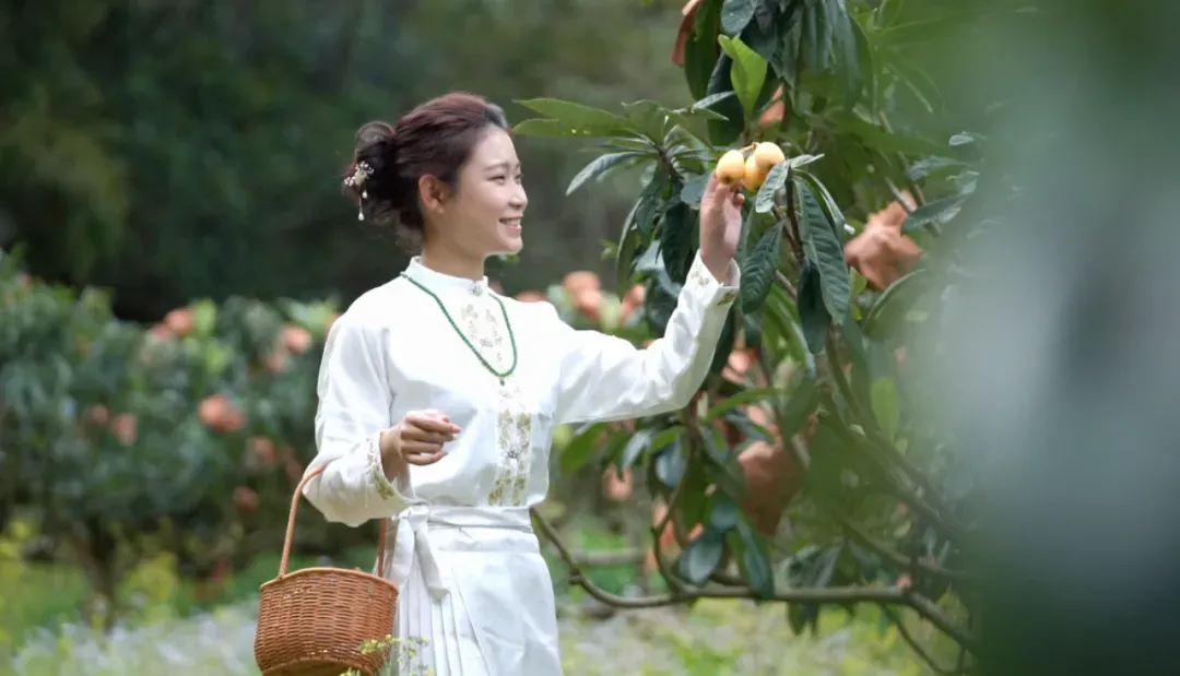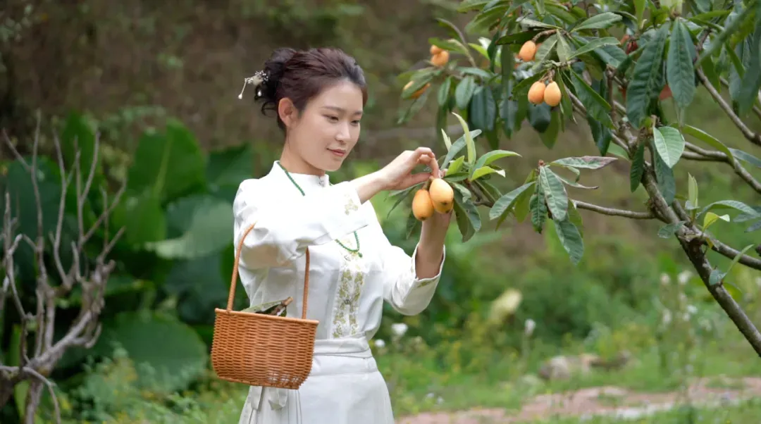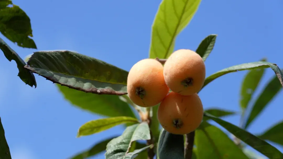 山坡上的枇杷园里挂满了沉甸甸的果实